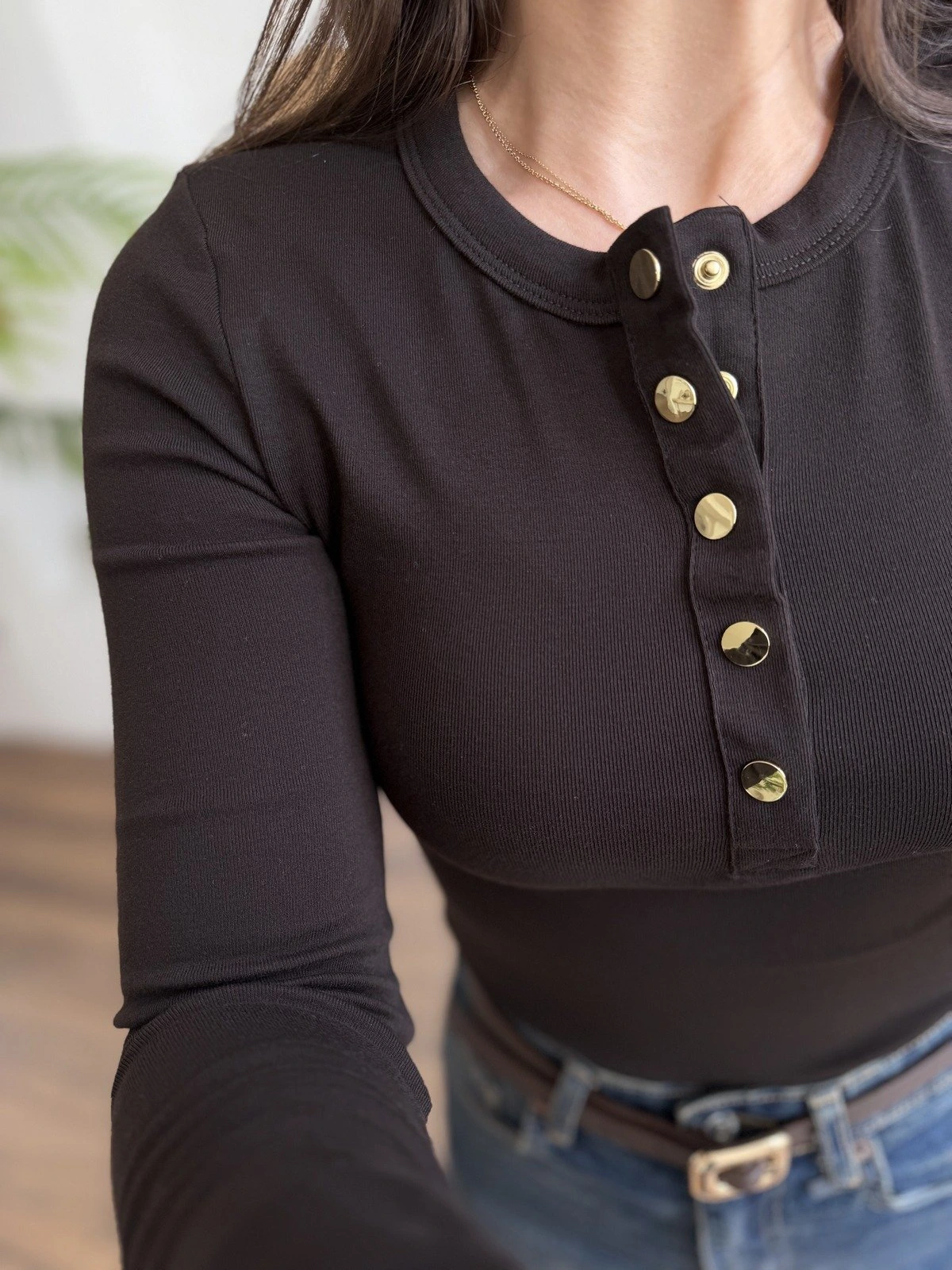 BİSİKLET YAKA GOLD ÇITÇITLI UZUN KOL PAMUK BLUZ – KAHVE