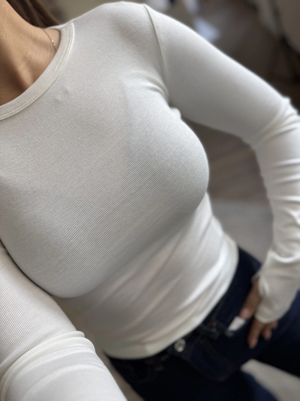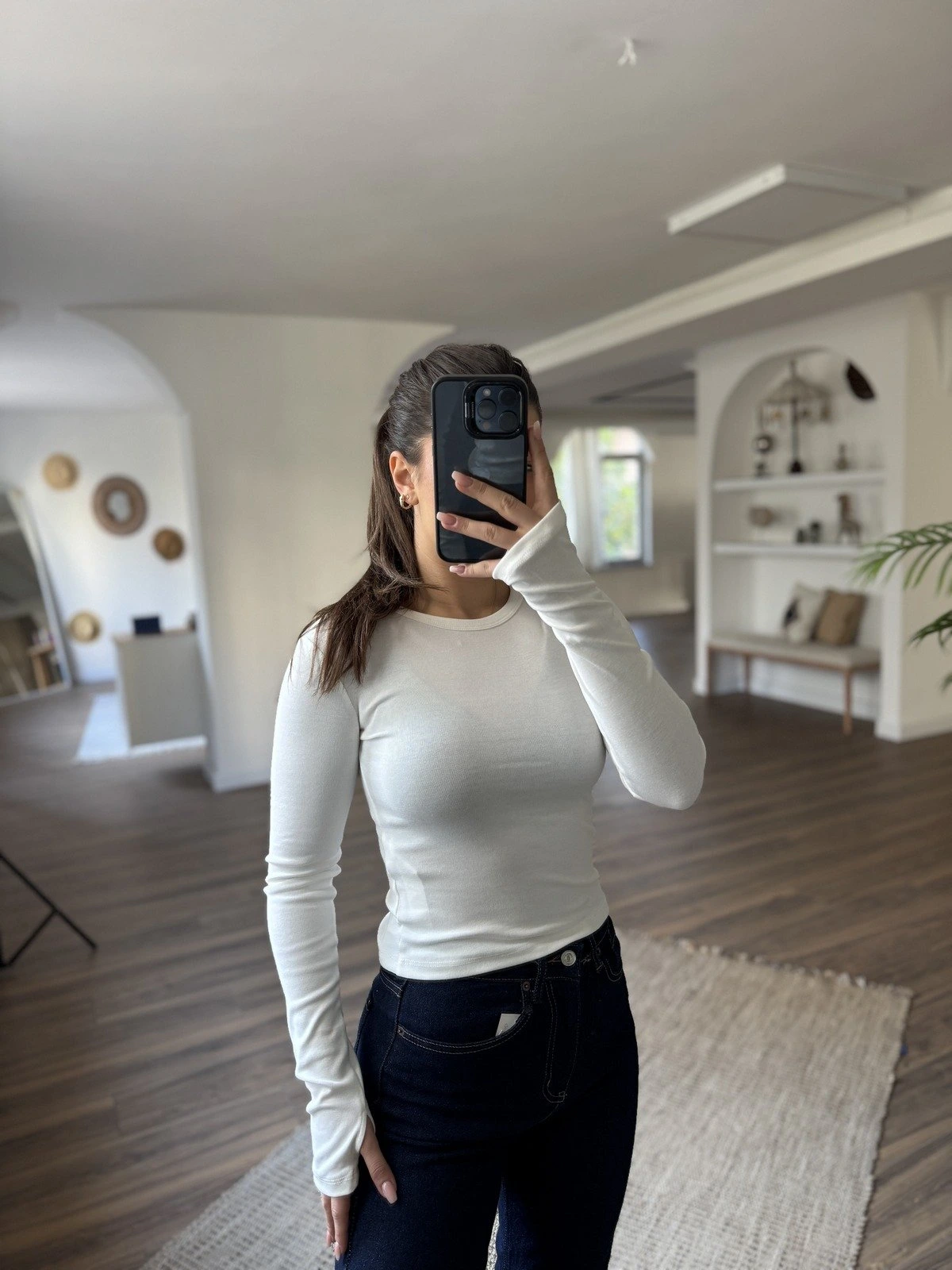 BİSİKLET YAKA PARMAK GEÇMELİ MODAL PAMUK BLUZ – EKRU