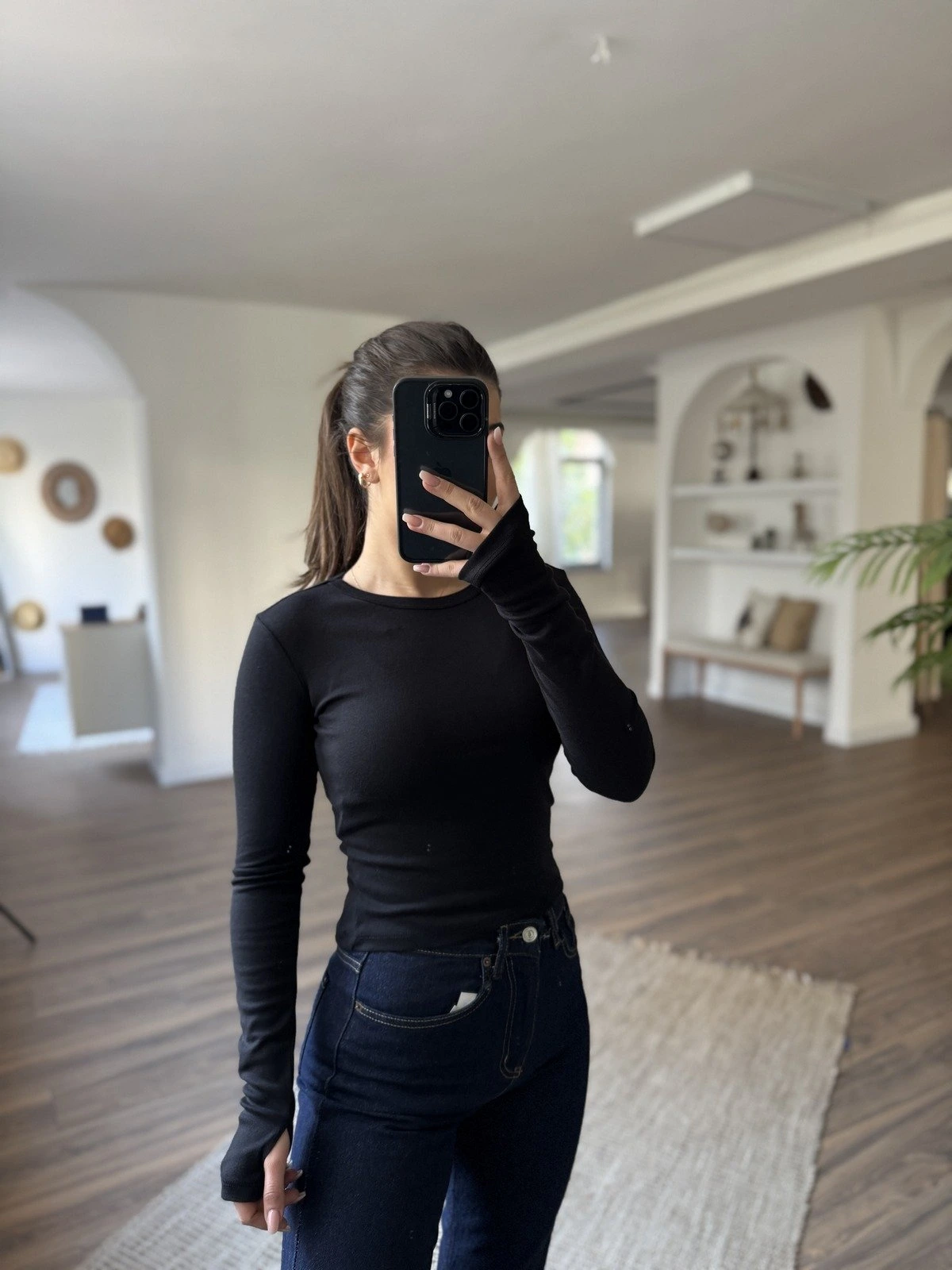 BİSİKLET YAKA PARMAK GEÇMELİ MODAL PAMUK BLUZ – SİYAH