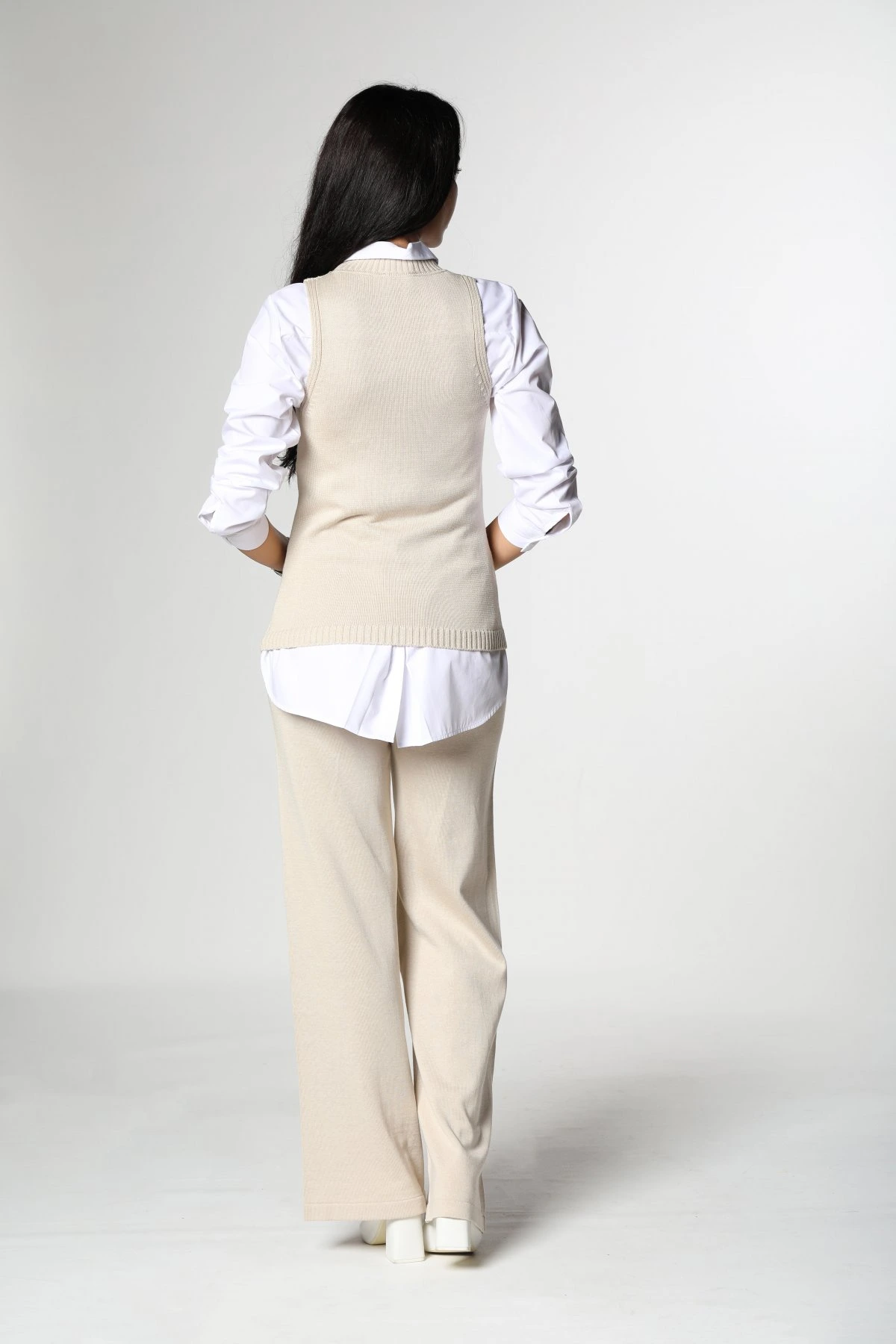 BİSİKLET YAKA SIFIR KOL TRİKO – KUM