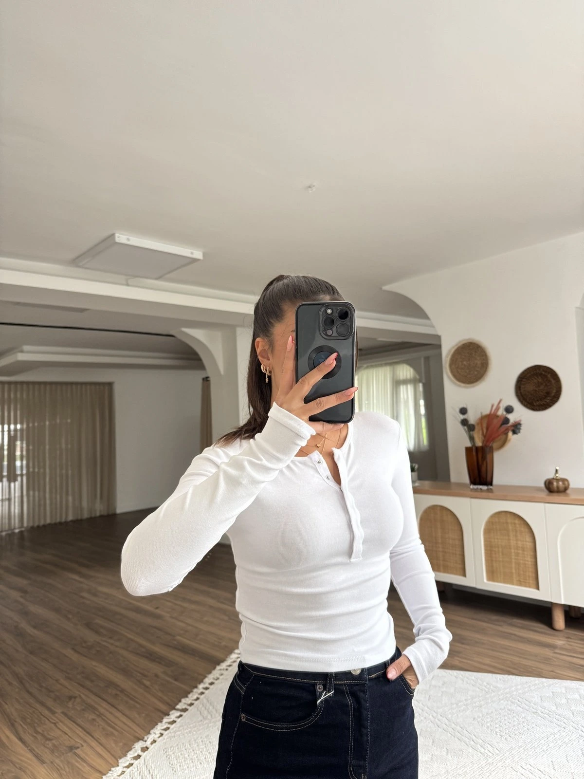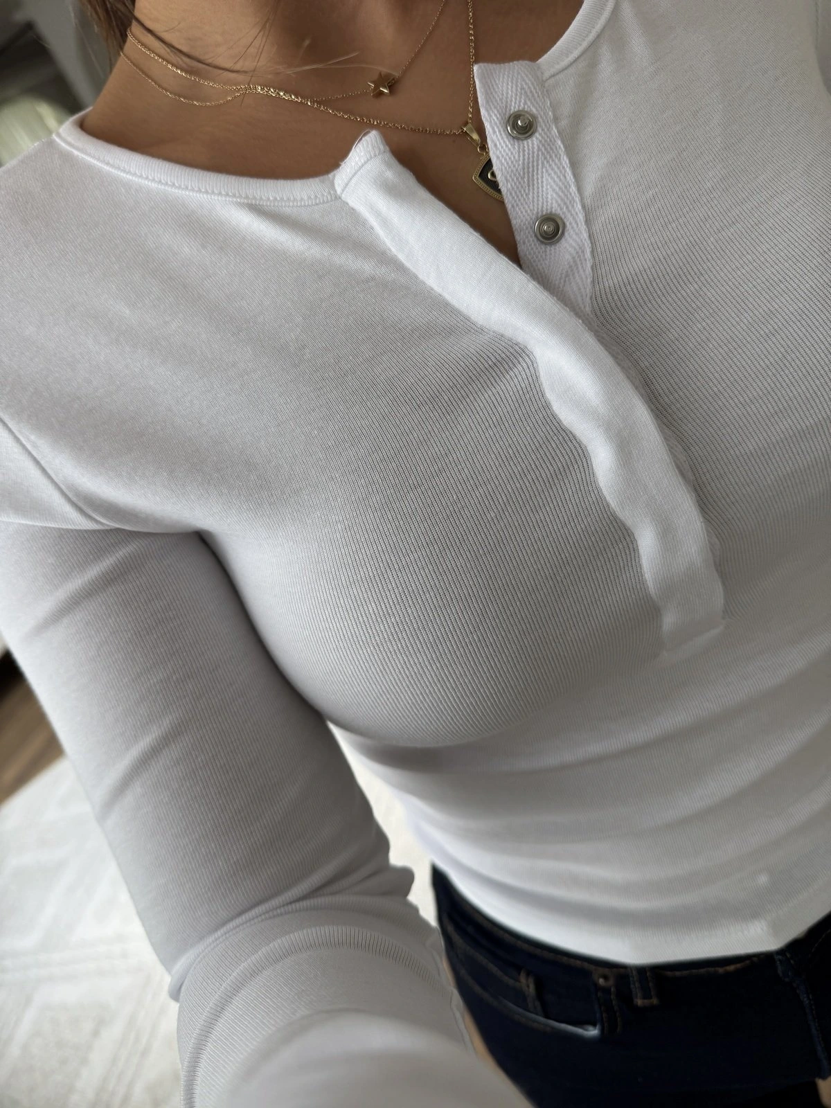 ÇITÇIT DÜĞMELİ UZUN KOL PAMUK MODAL BLUZ – BEYAZ