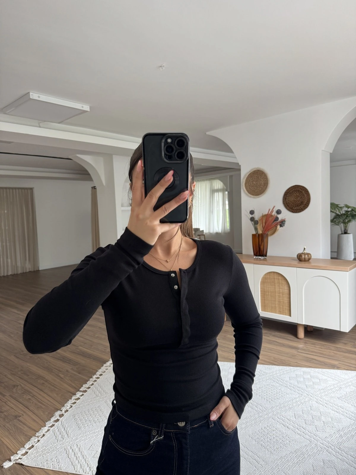 ÇITÇIT DÜĞMELİ UZUN KOL PAMUK MODAL BLUZ – SİYAH
