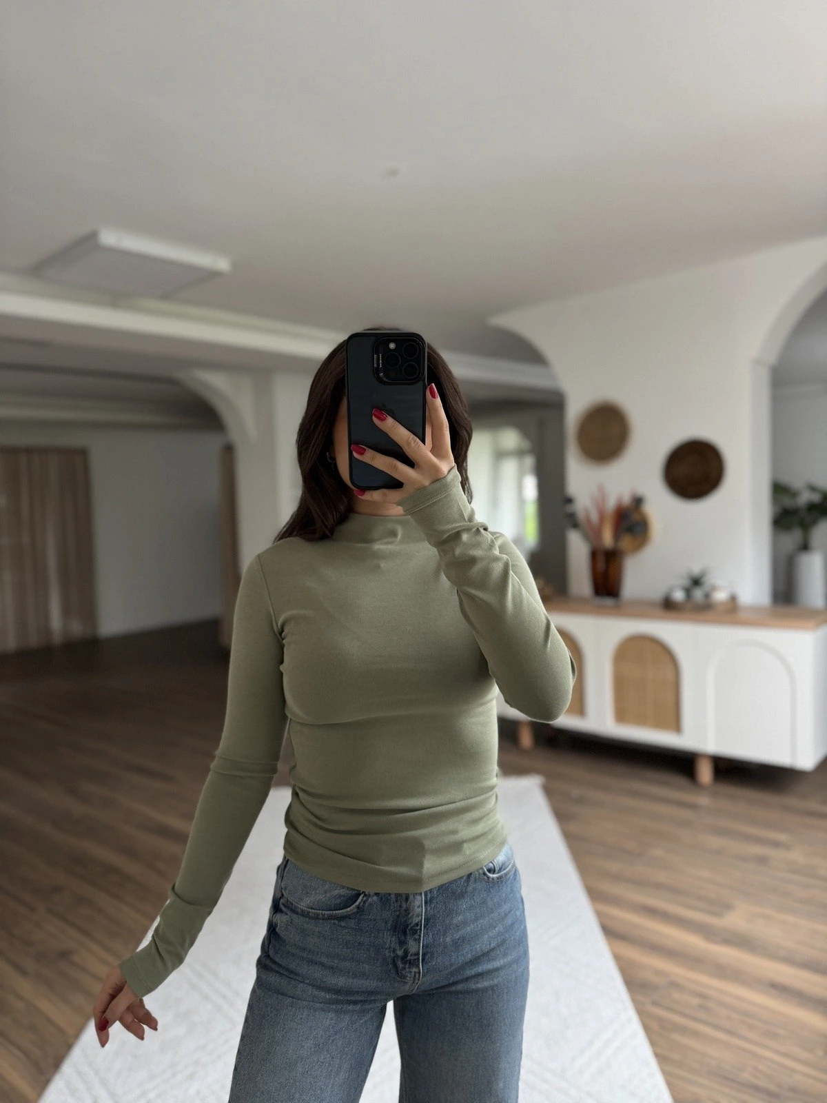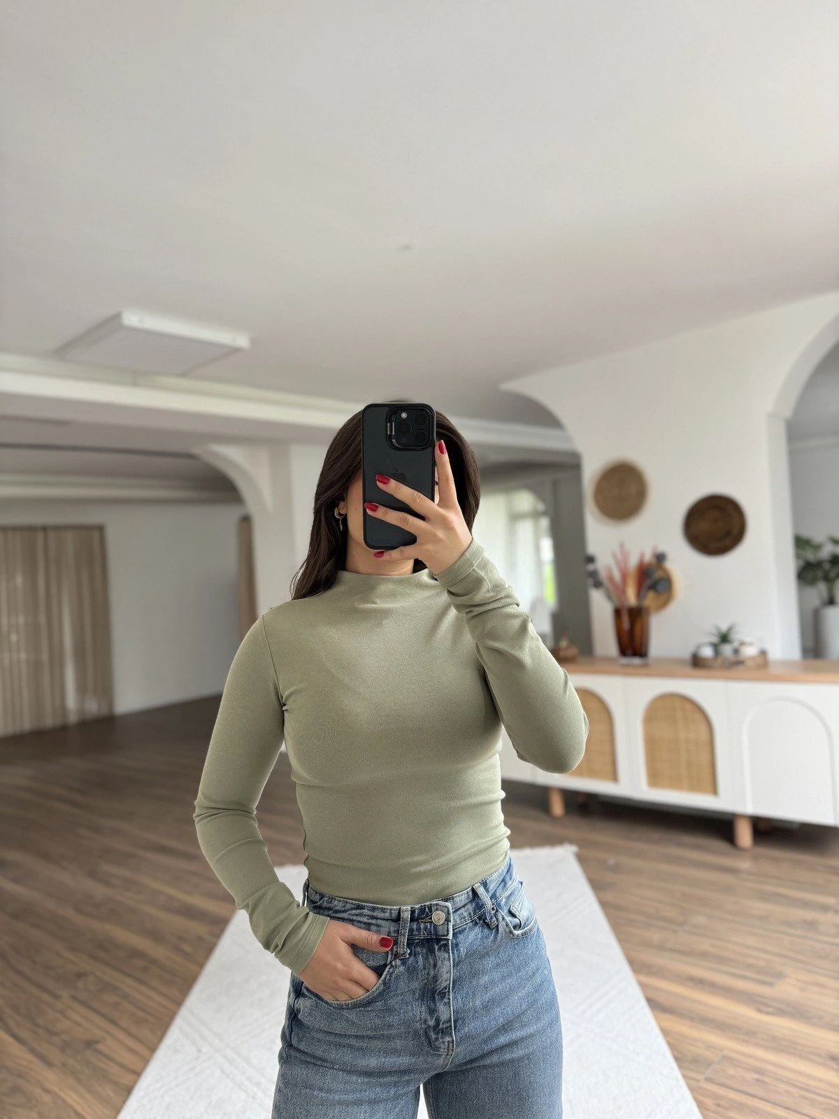 DİK YAKA PAMUK LİKRALI UZUN KOL BLUZ – ÇAĞLA YEŞİLİ
