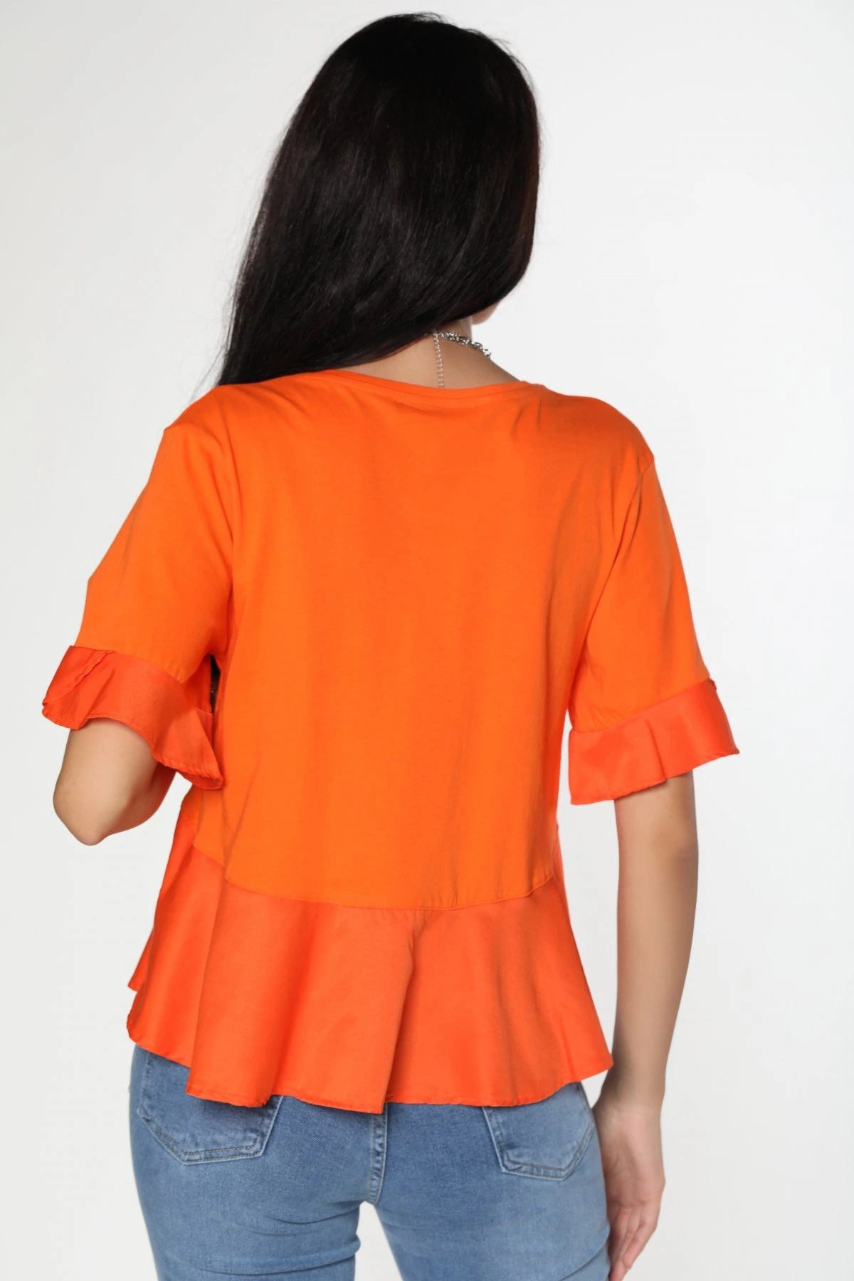 ETEĞİ VOLANLI BLUZ – ORANGE