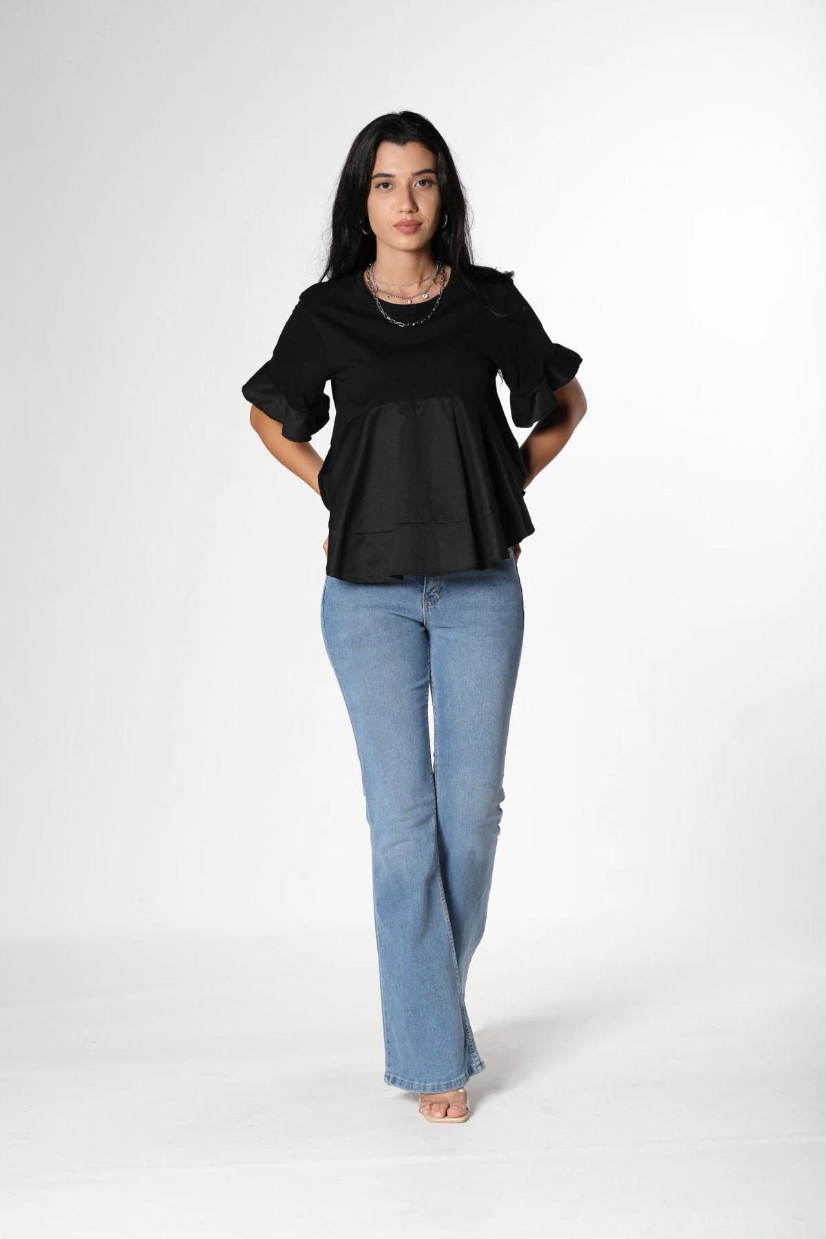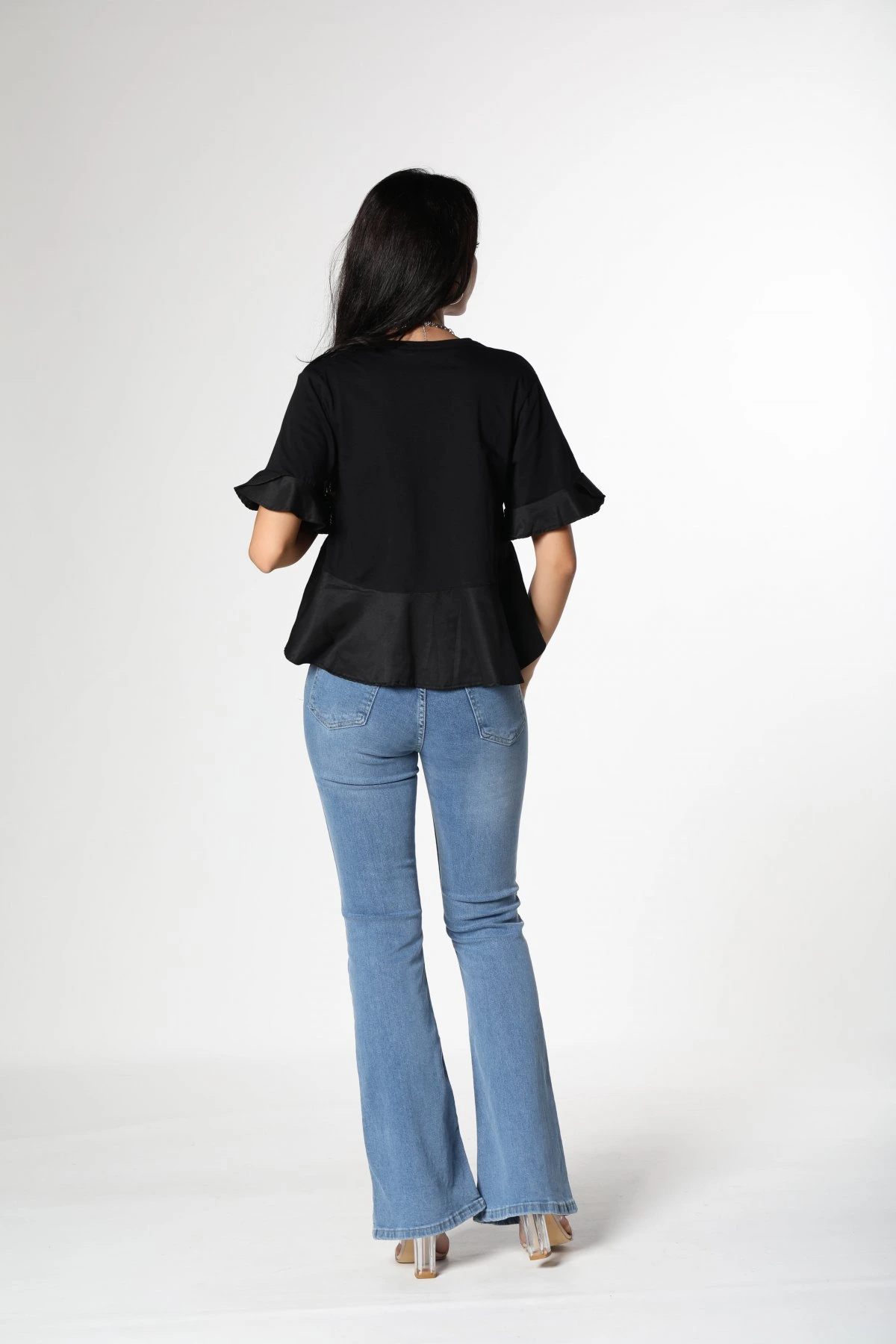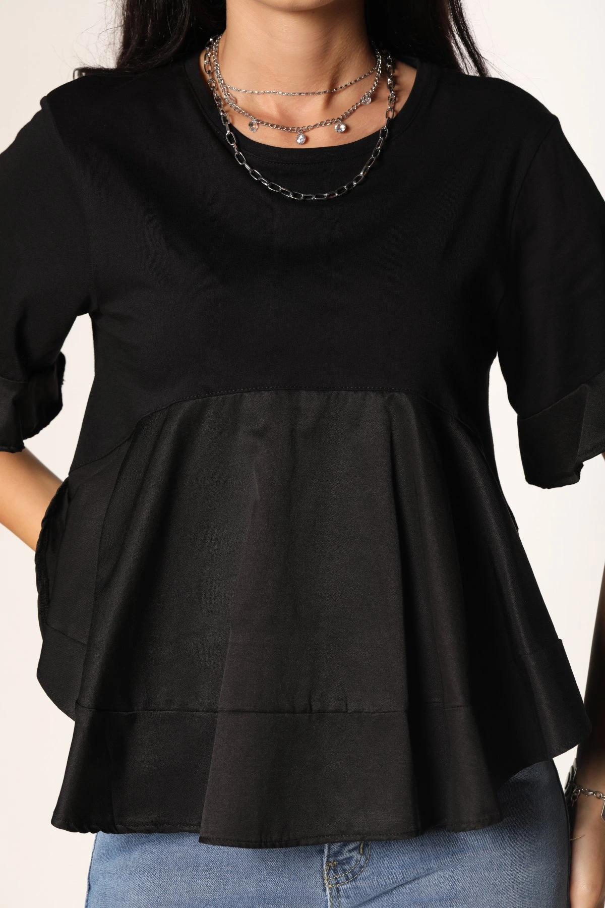 ETEĞİ VOLANLI BLUZ – SİYAH