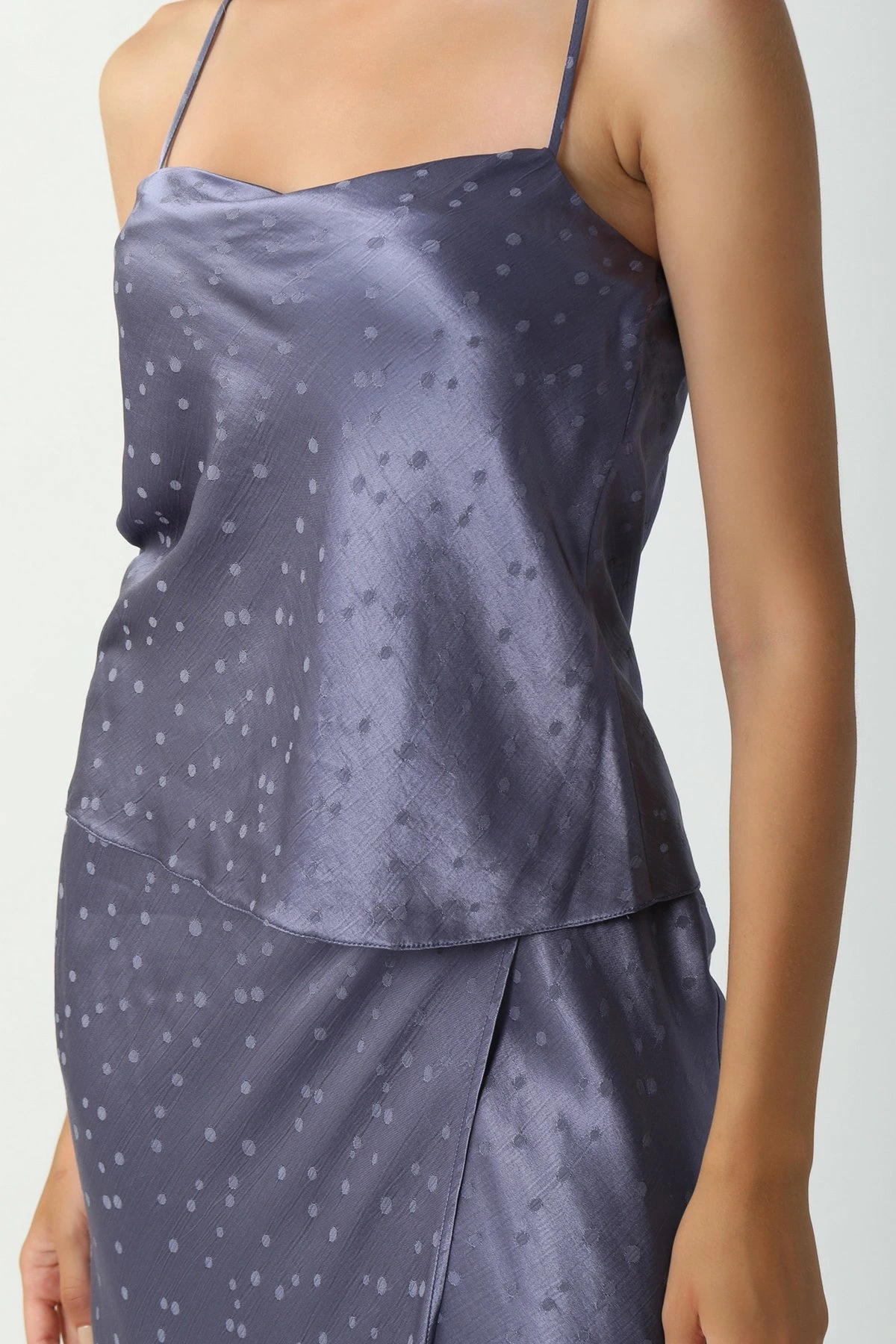 İTHAL ASKILI FLOŞ PUANTİYELİ BLUZ – MAVİ