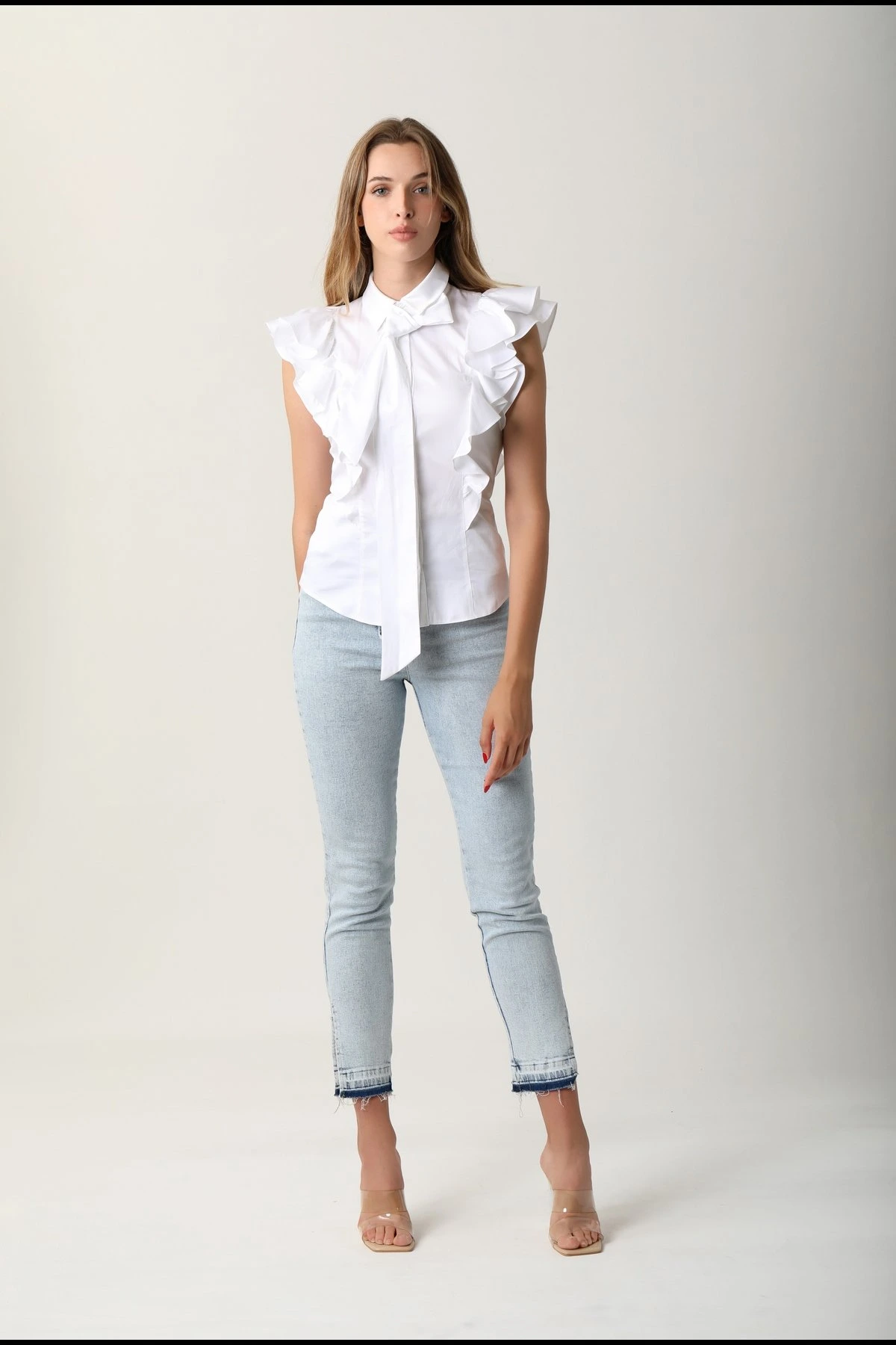 İTHAL FİYONK YAKA DETAY BLUZ – BEYAZ