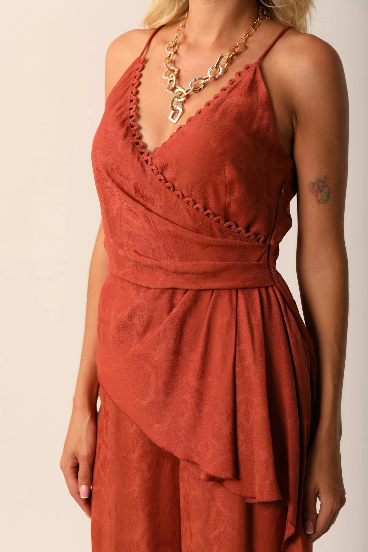 İTHAL KRUVAZE ASİMETRİK BLUZ – KİREMİT