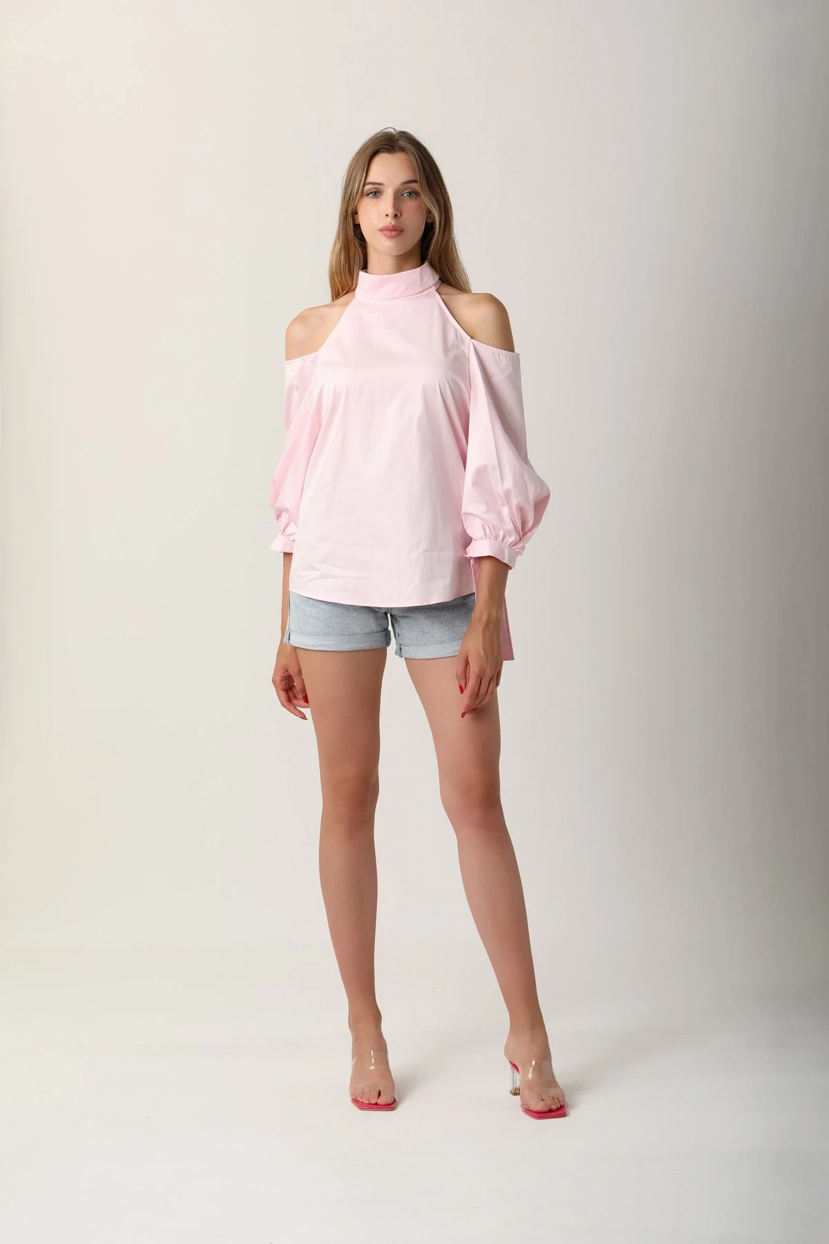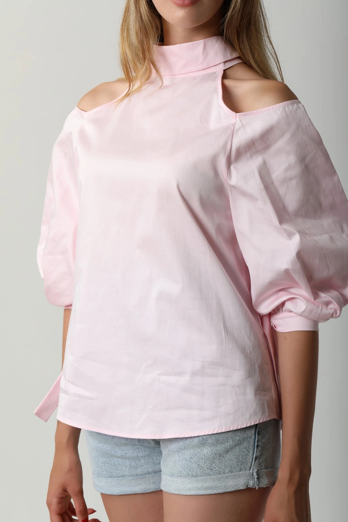 İTHAL OMUZ DEKOLTELİ BLUZ – PEMBE