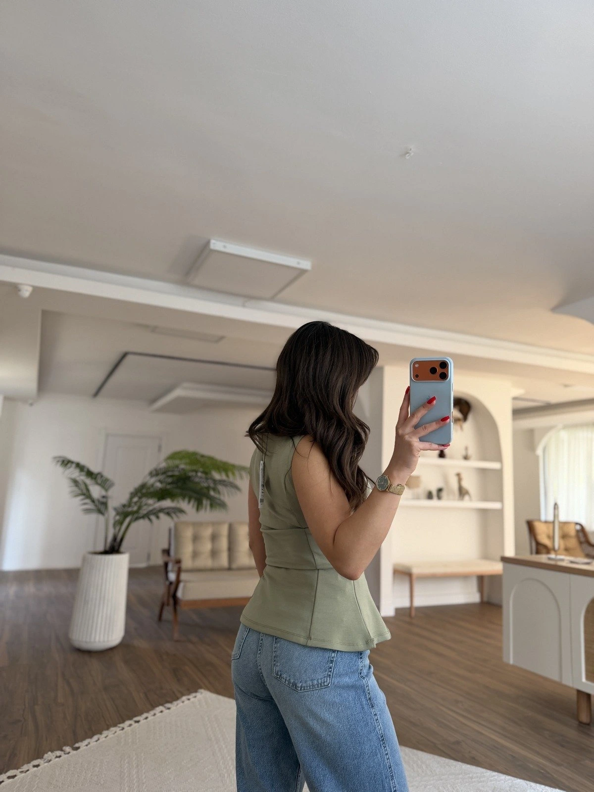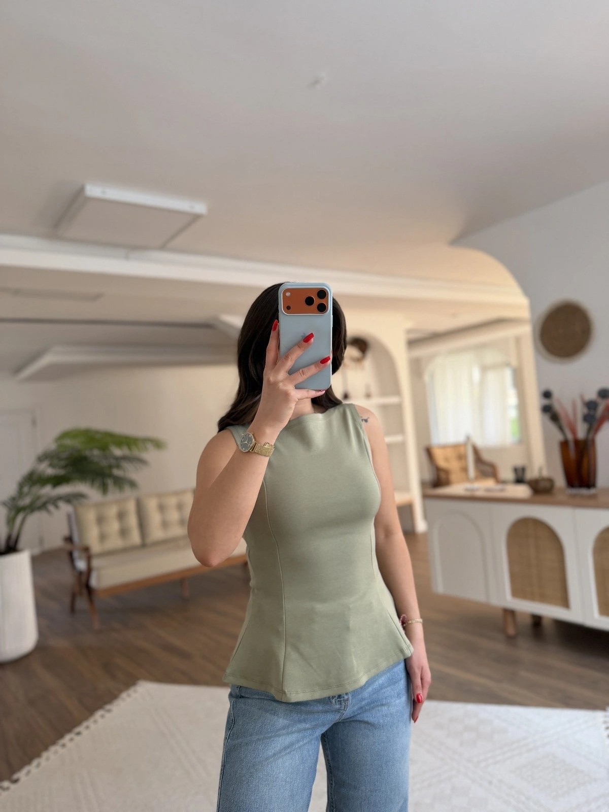 KAYIK YAKA ETEĞİ ÇAN PAMUK LİKRA BLUZ – ÇAĞLA YEŞİLİ