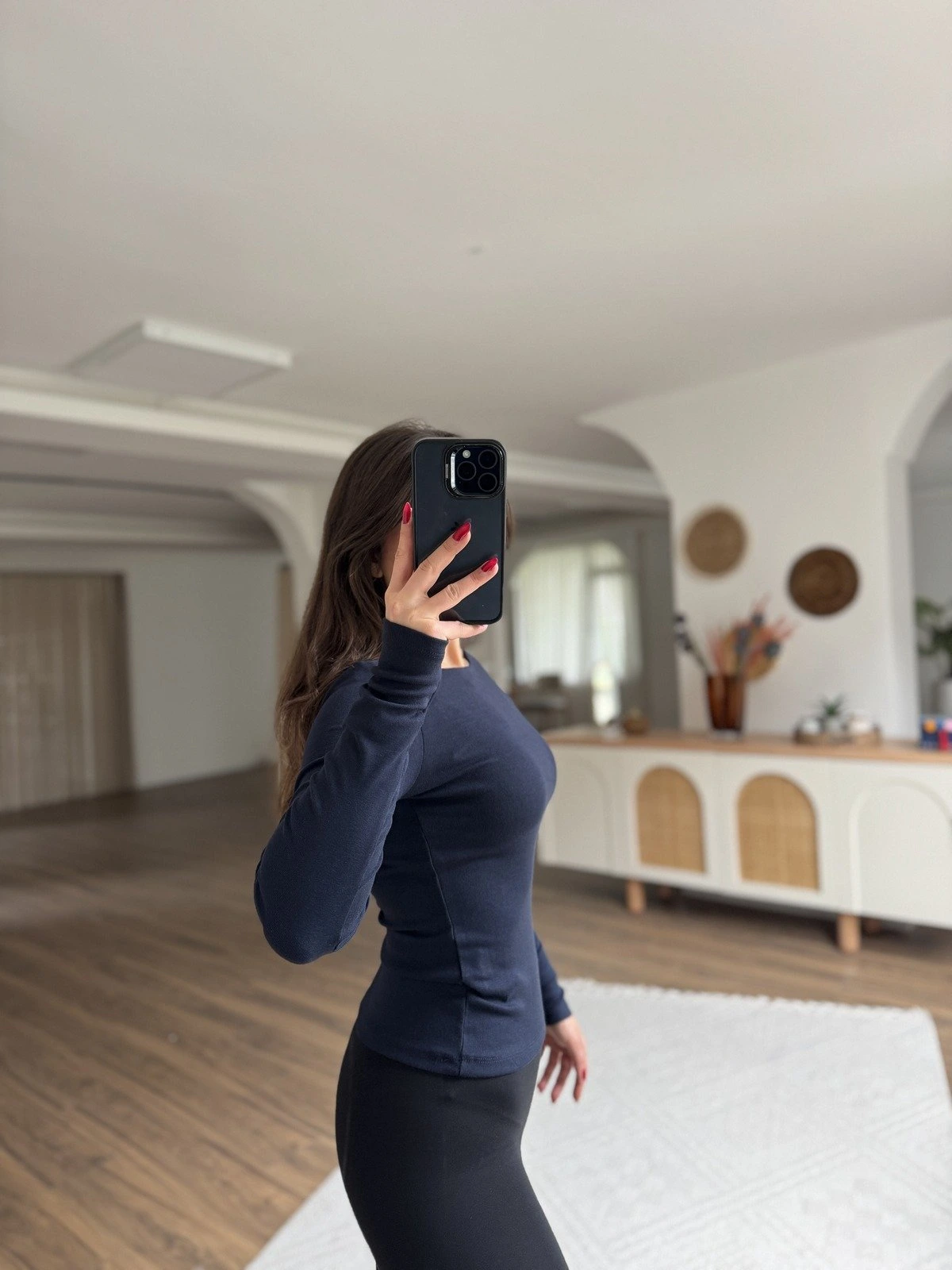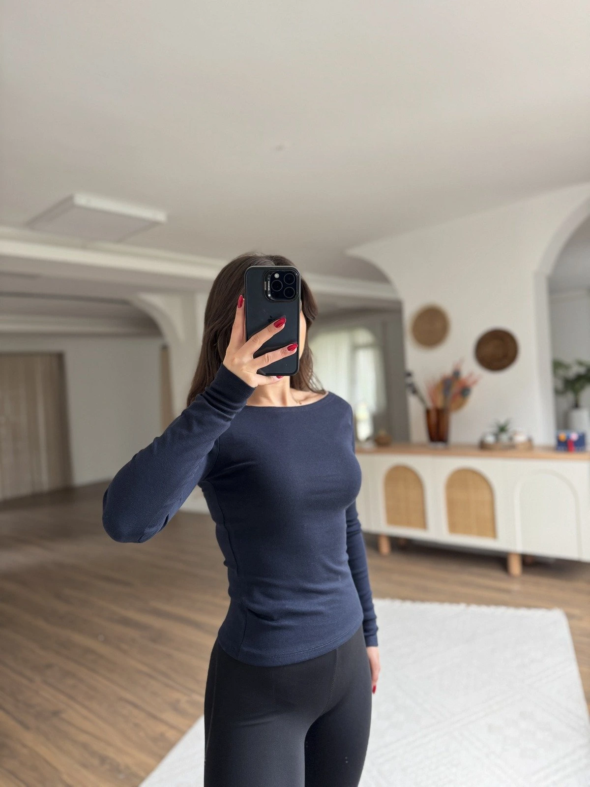 KAYIK YAKA MODAL PAMUK UZUN KOL BLUZ – LACİVERT
