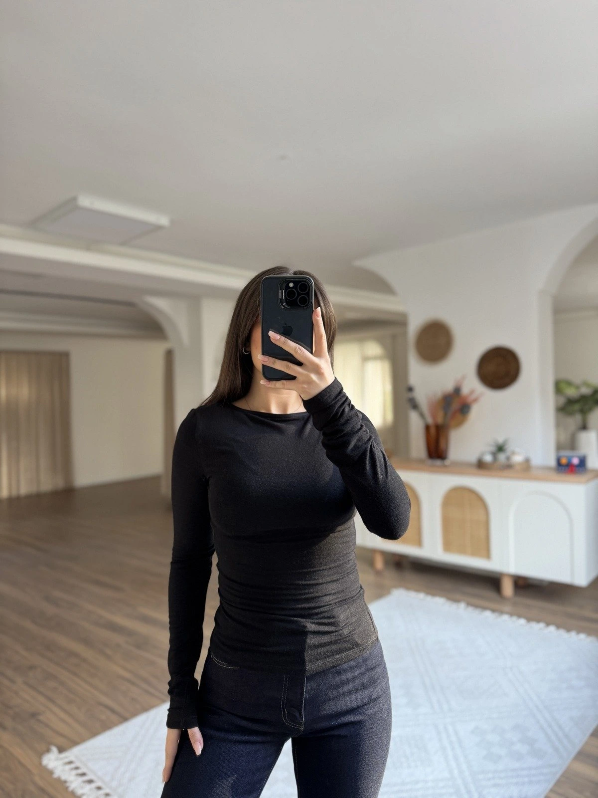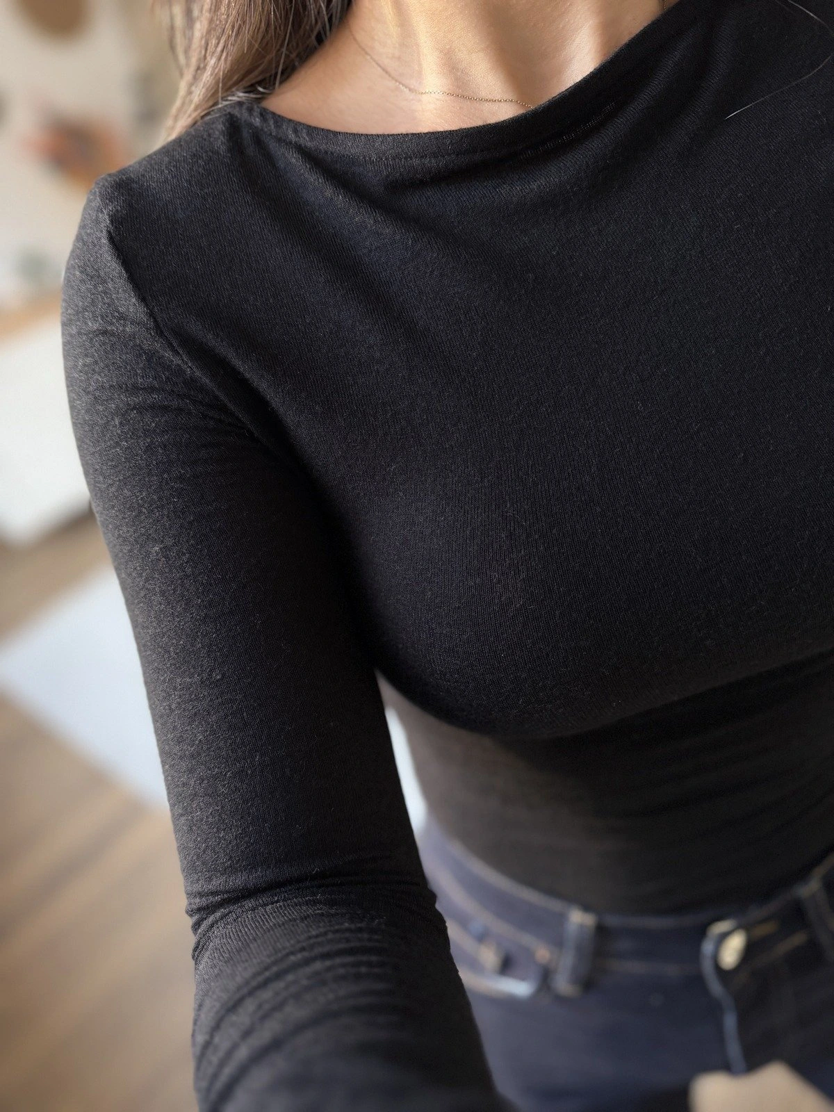 KAYIK YAKA YÜN KARIŞIM VİSKON BLUZ – SİYAH