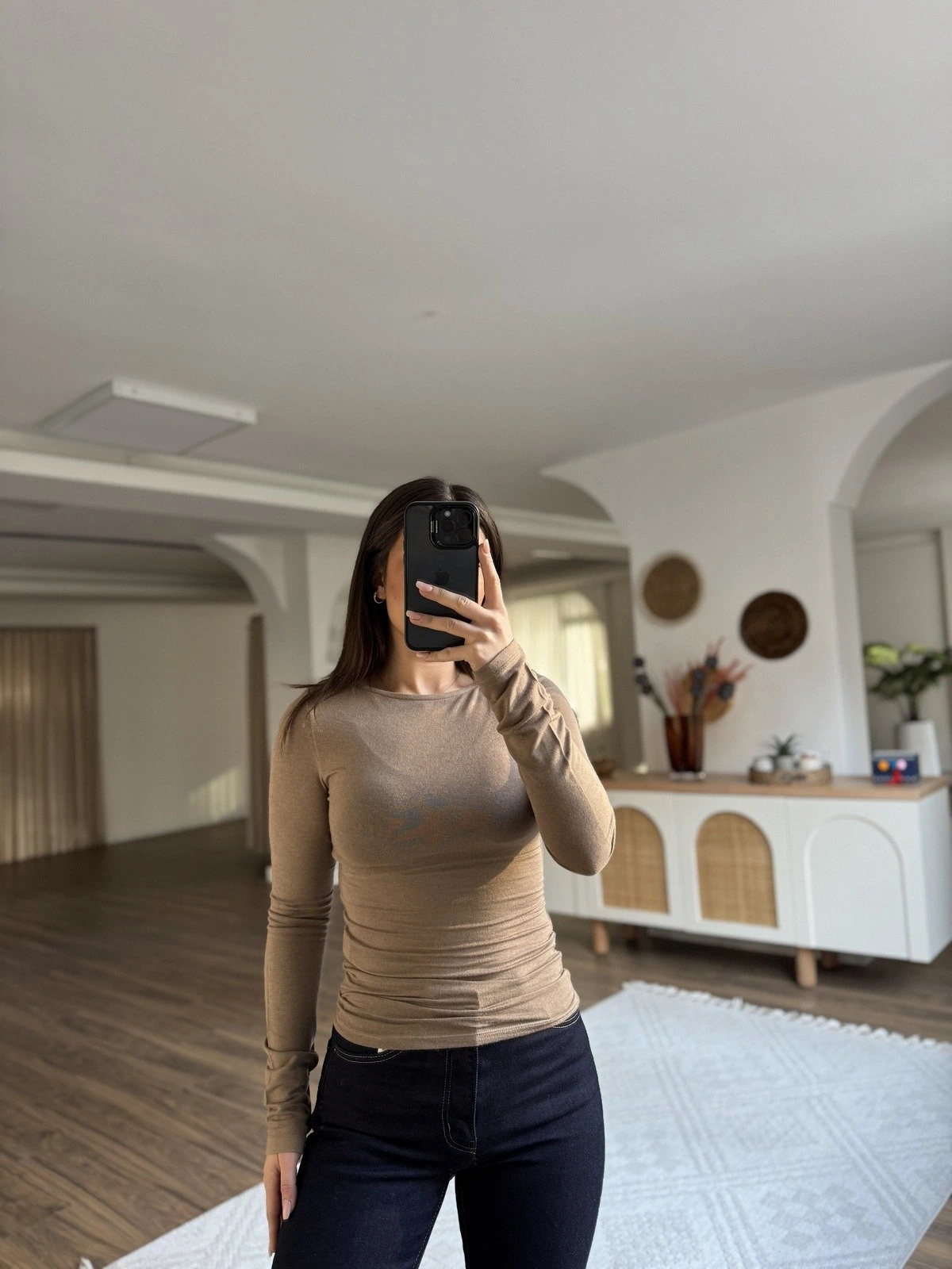 KAYIK YAKA YÜN KARIŞIM VİSKON BLUZ – VİZON