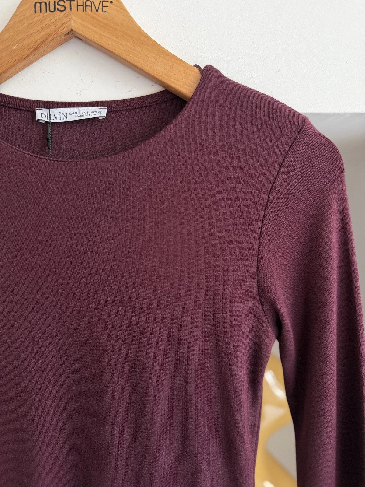KOL VOLANLI GÖĞSÜ ÇİFT KAT MODAL PAMUK BLUZ – BORDO