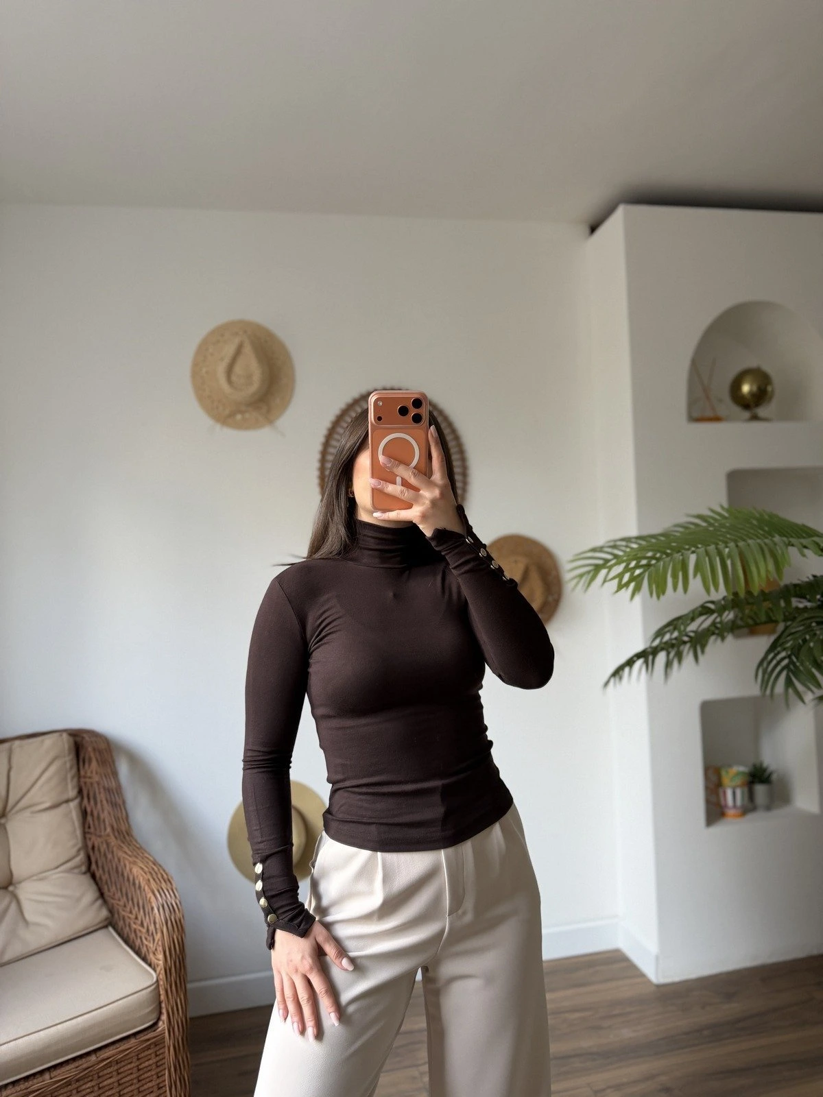 KOLU ÇITÇITLI BALIKÇI YAKA VİSKON BLUZ – KAHVE