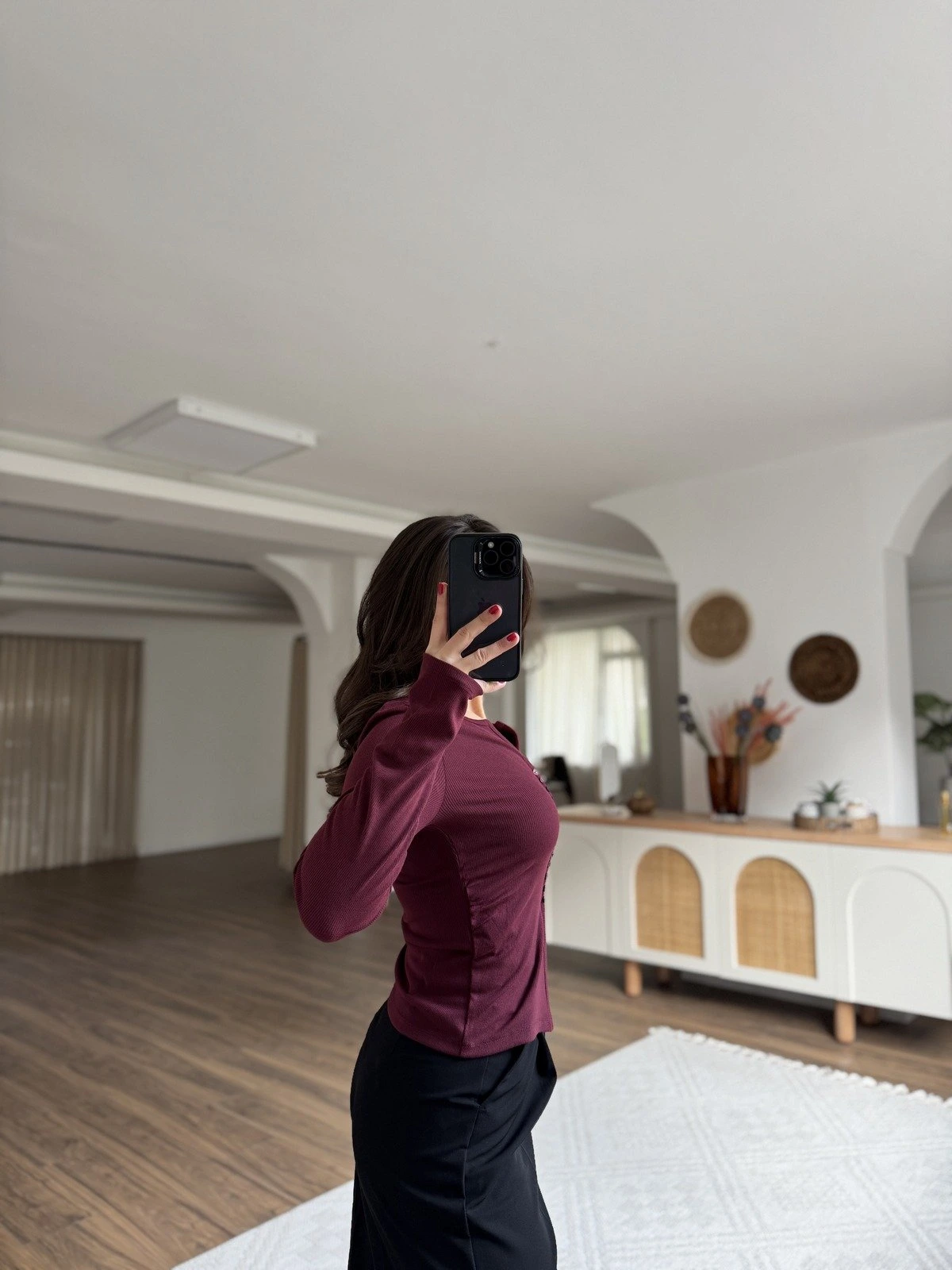 KÜÇÜK SIRA DÜĞME DETAY YAN BÜZGÜ VİSKON BLUZ – BORDO