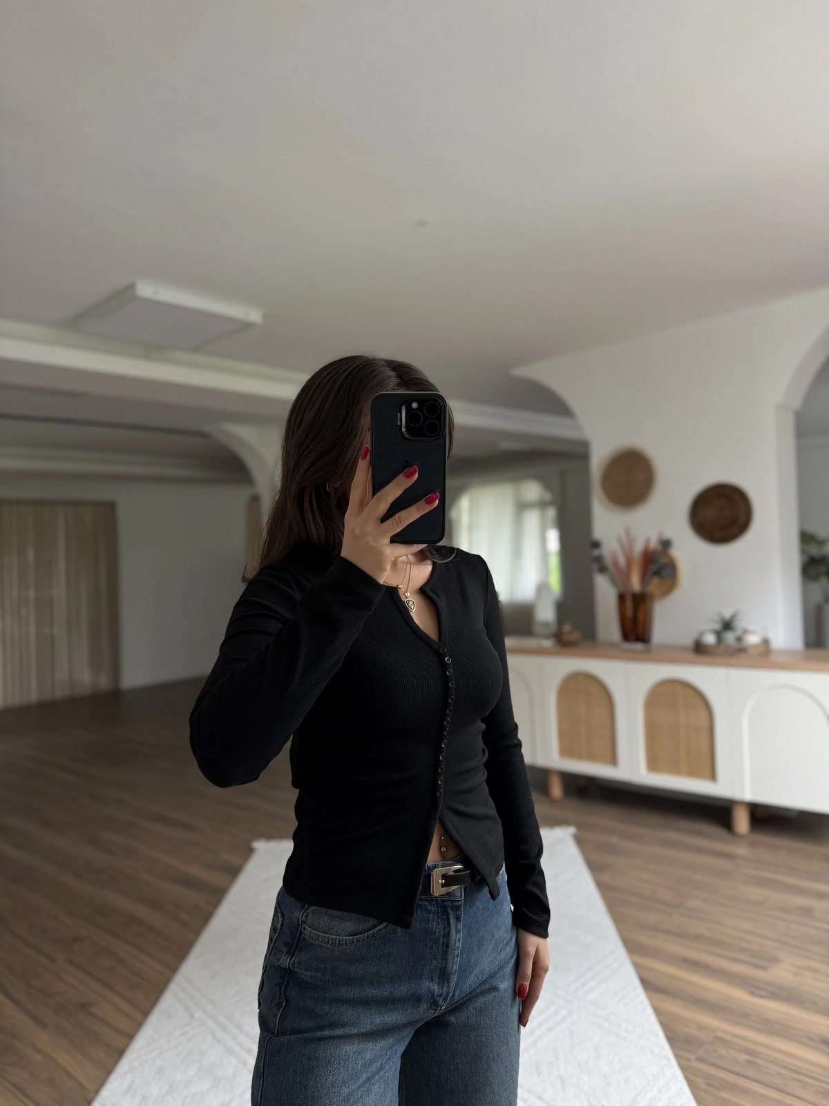 KÜÇÜK SIRA DÜĞME DETAY YAN BÜZGÜ VİSKON BLUZ – SİYAH