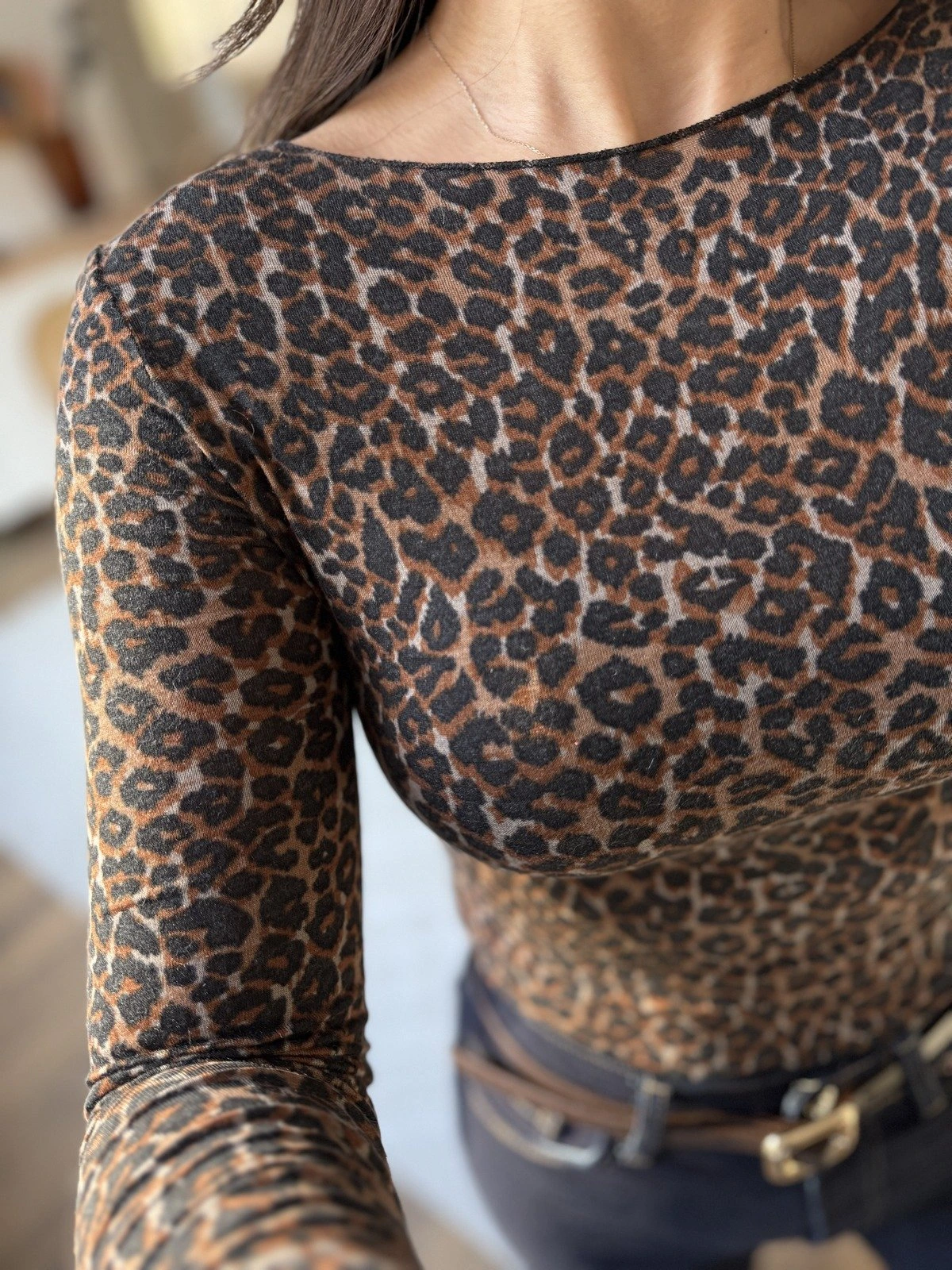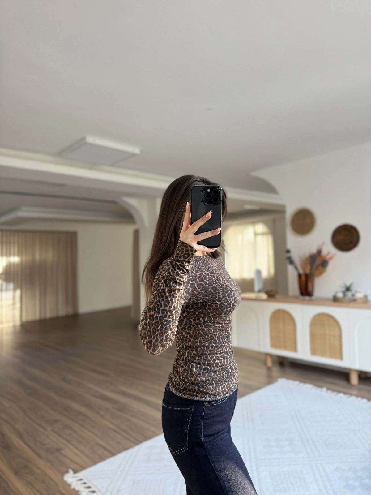 LEOPAR DESEN KAŞMİR KARIŞIM MODAL BLUZ – SİYAH