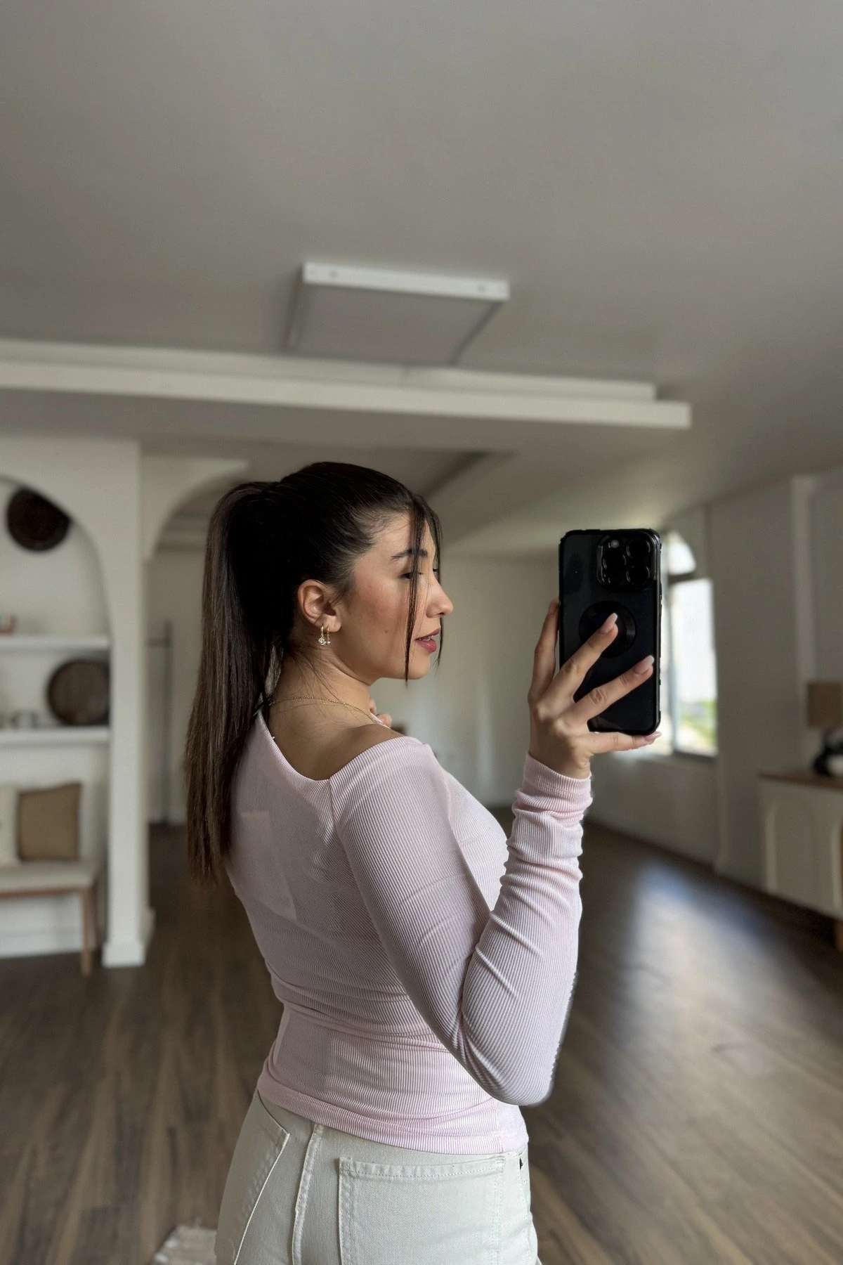 TEK OMUZ ASİMETRİ FİTİLLİ LİRALI BLUZ – AÇIK PEMBE