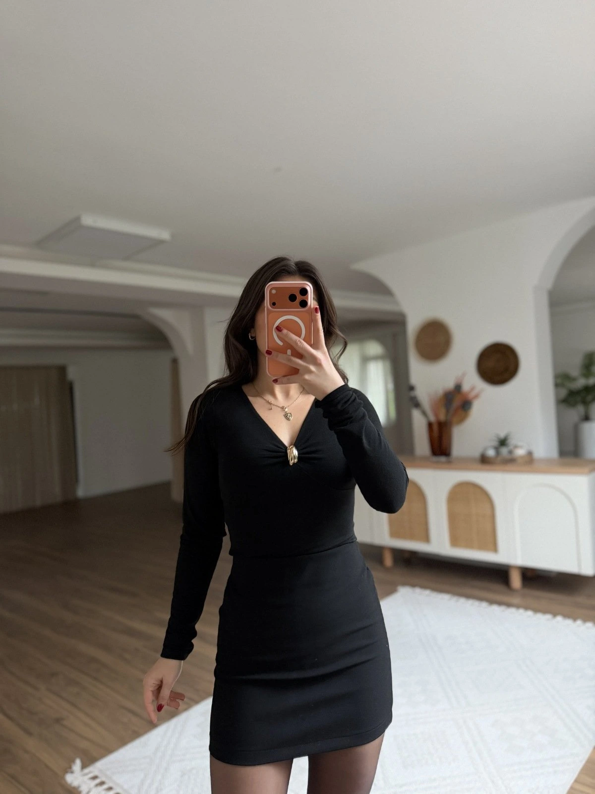 V YAKA TOKALI VİSKON BLUZ – SİYAH