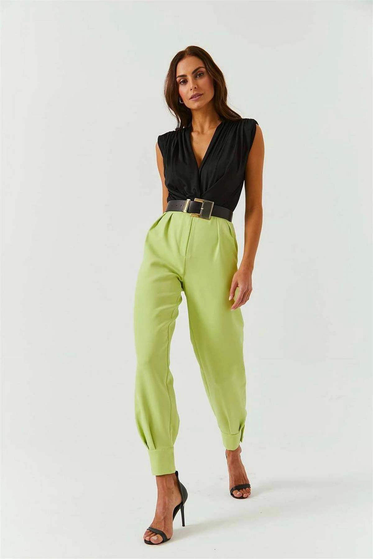 KEMERLİ LİKRALI ÖN DİKİŞLİ BOL PAÇA PANTOLON - BEYAZ