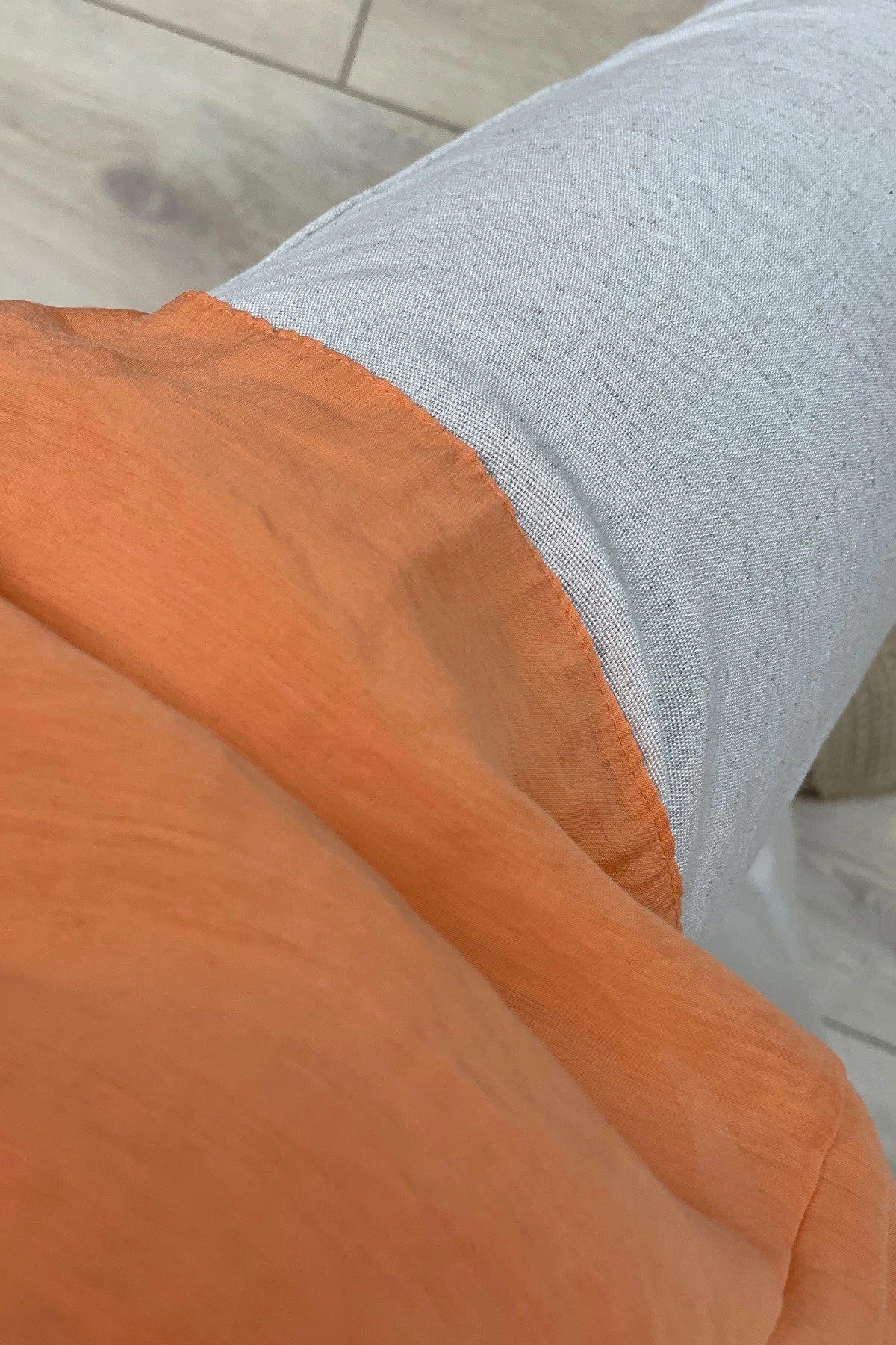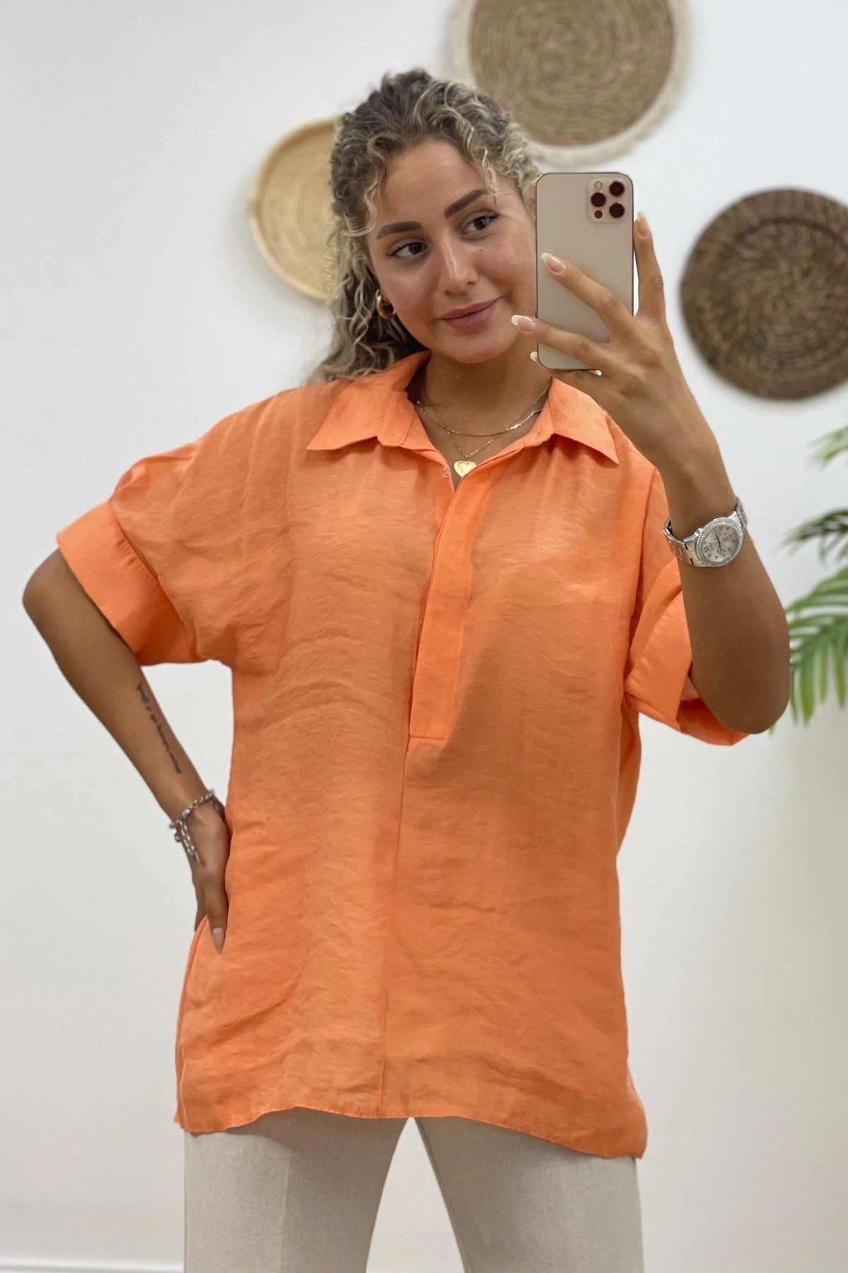 YARI PATLI ARKA DÜĞMELİ YAKALI MODAL BLUZ – ORANGE