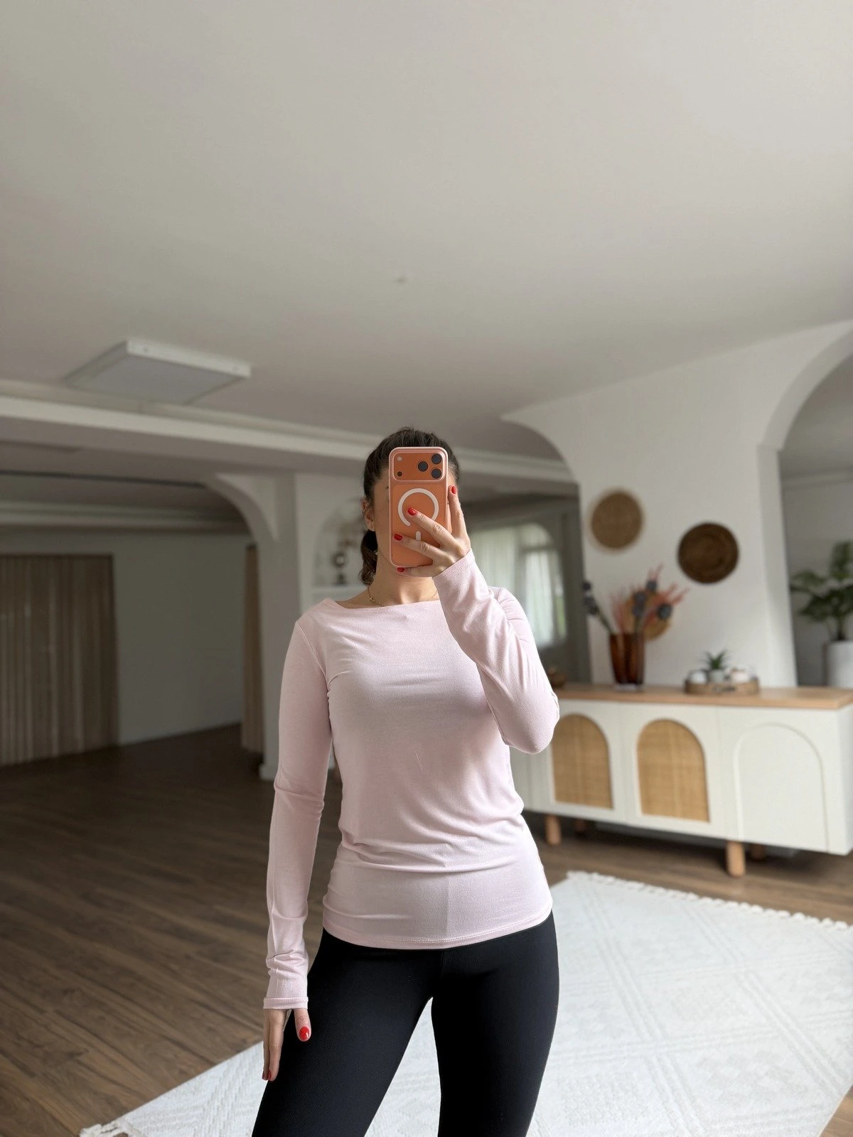 YUMUŞAK TÜŞELİ İNCE DOKUMA VİSKON LİKRA BLUZ – PUDRA