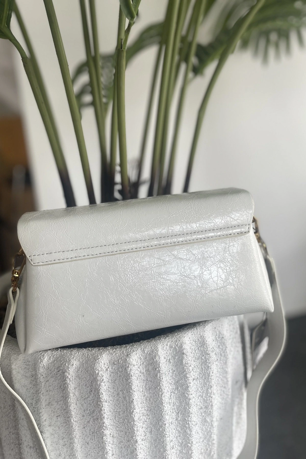 İTHAL DİKDÖRTGEN DÖNMELİ METAL TOKA PARLAK ÇANTA – BEYAZ