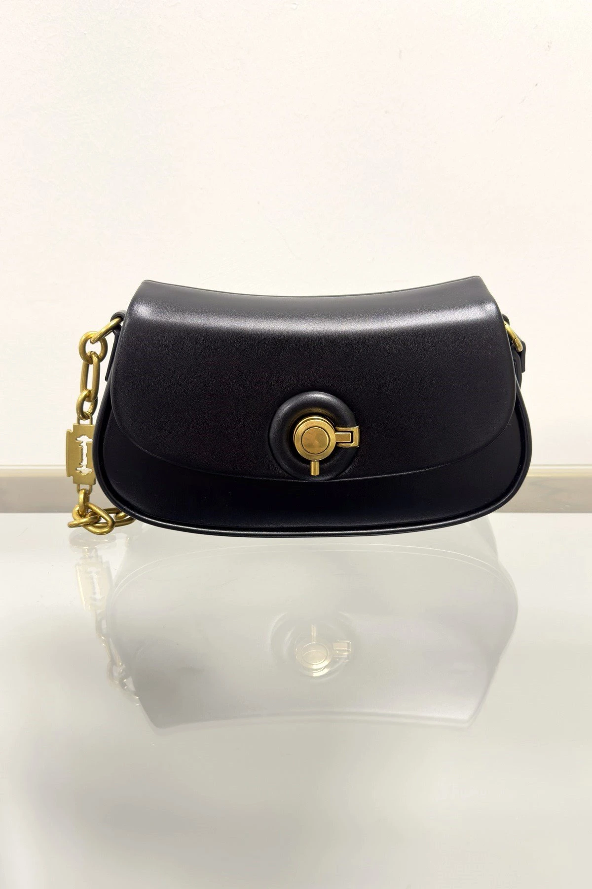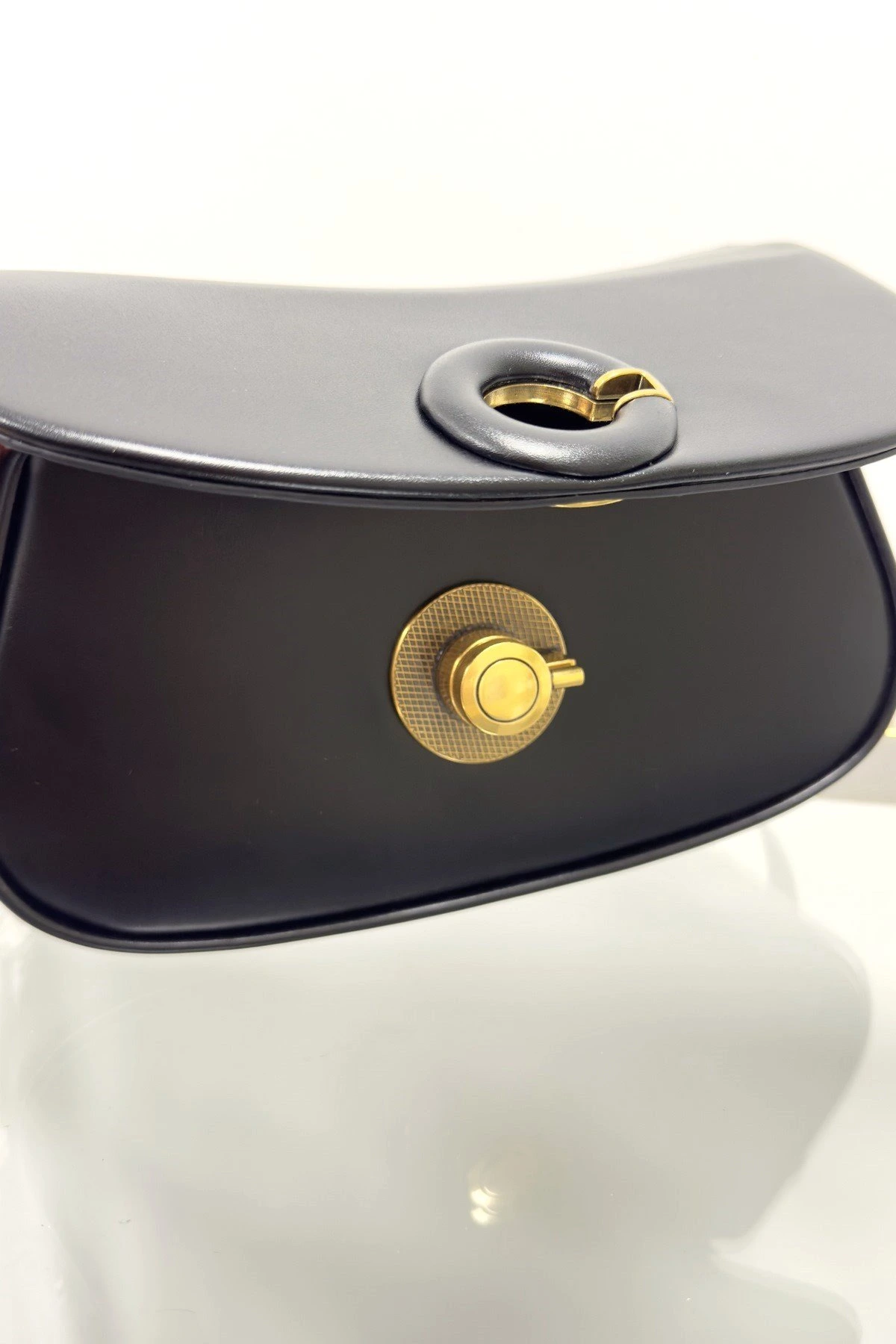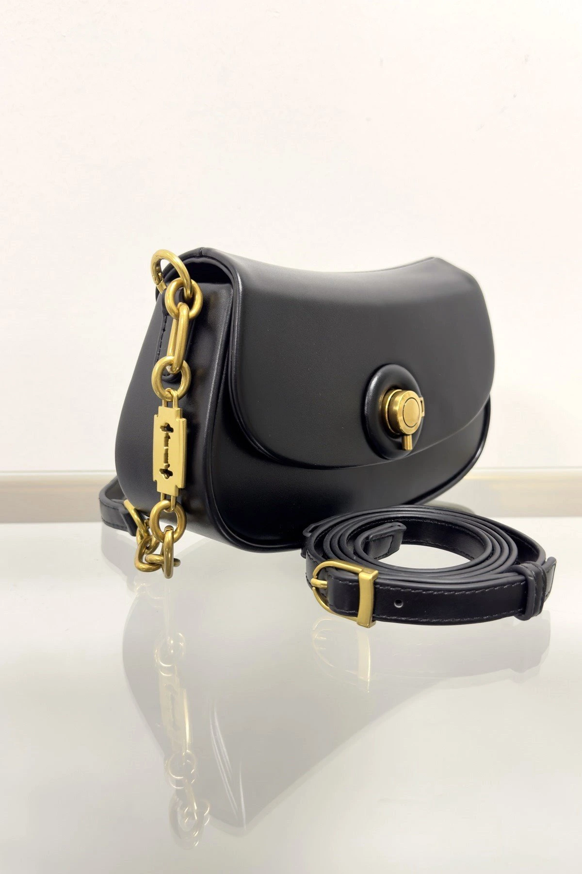 İTHAL DİKDÖRTGEN DÖNMELİ YUVARLAK METAL TOKA ÇANTA – SİYAH