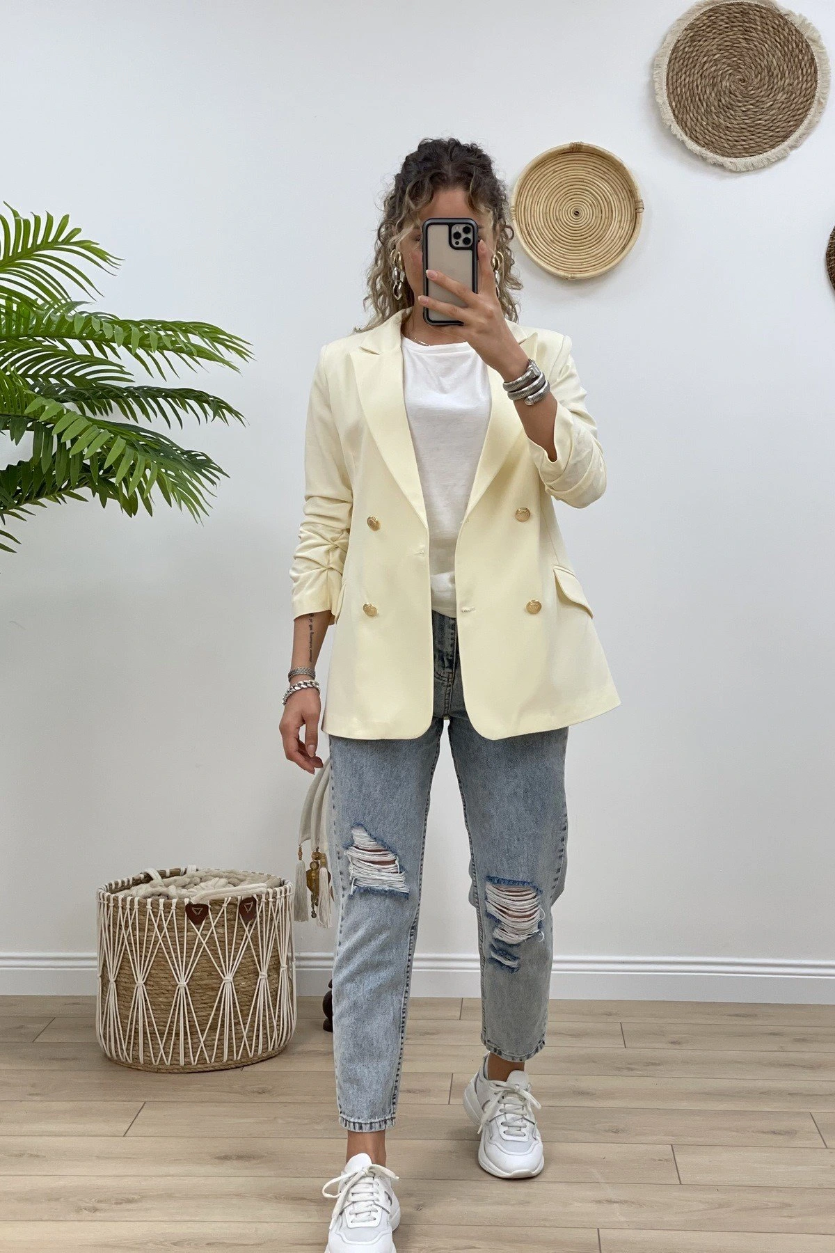 4 DÜĞME KOL BÜZGÜ KRUVAZE CEKET – TAŞ