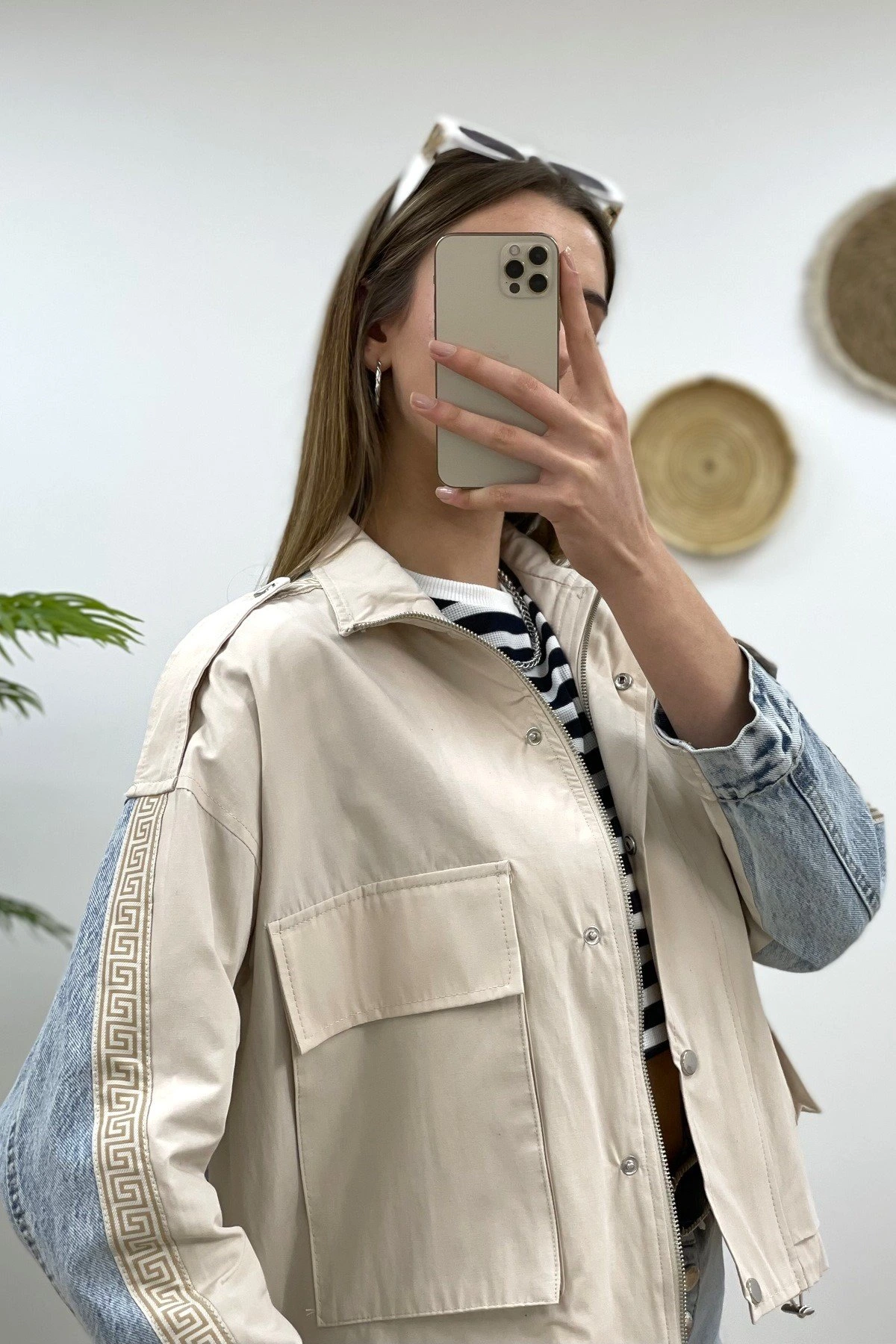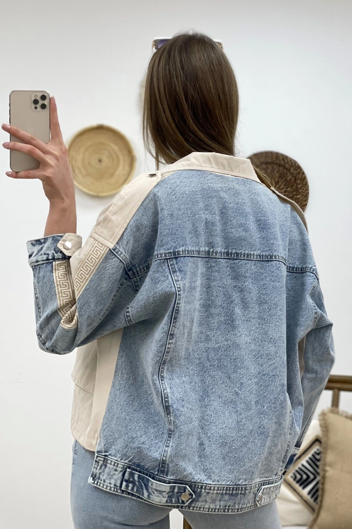 ARKA JEAN KOL ŞERİT CEKET – TAŞ