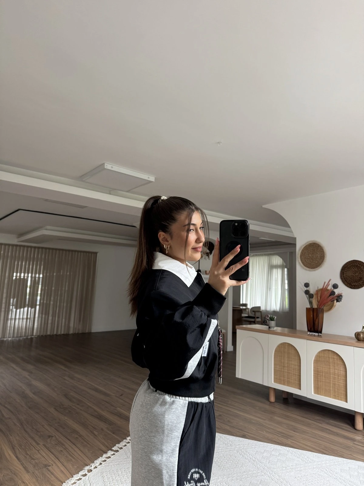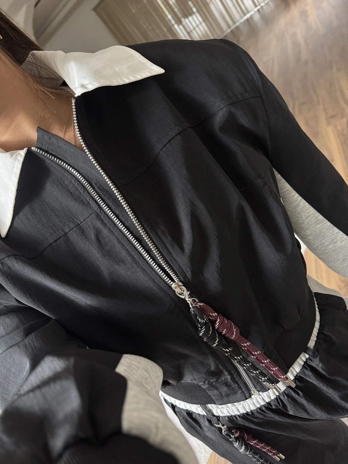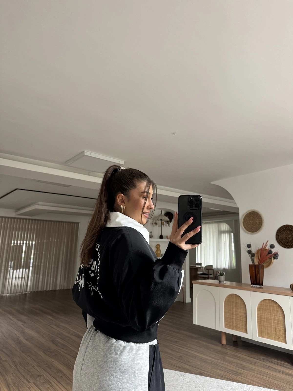 ARKA YAZILI AKSESUARLI GÖMLEK YAKA BOMBER CEKET – SİYAH