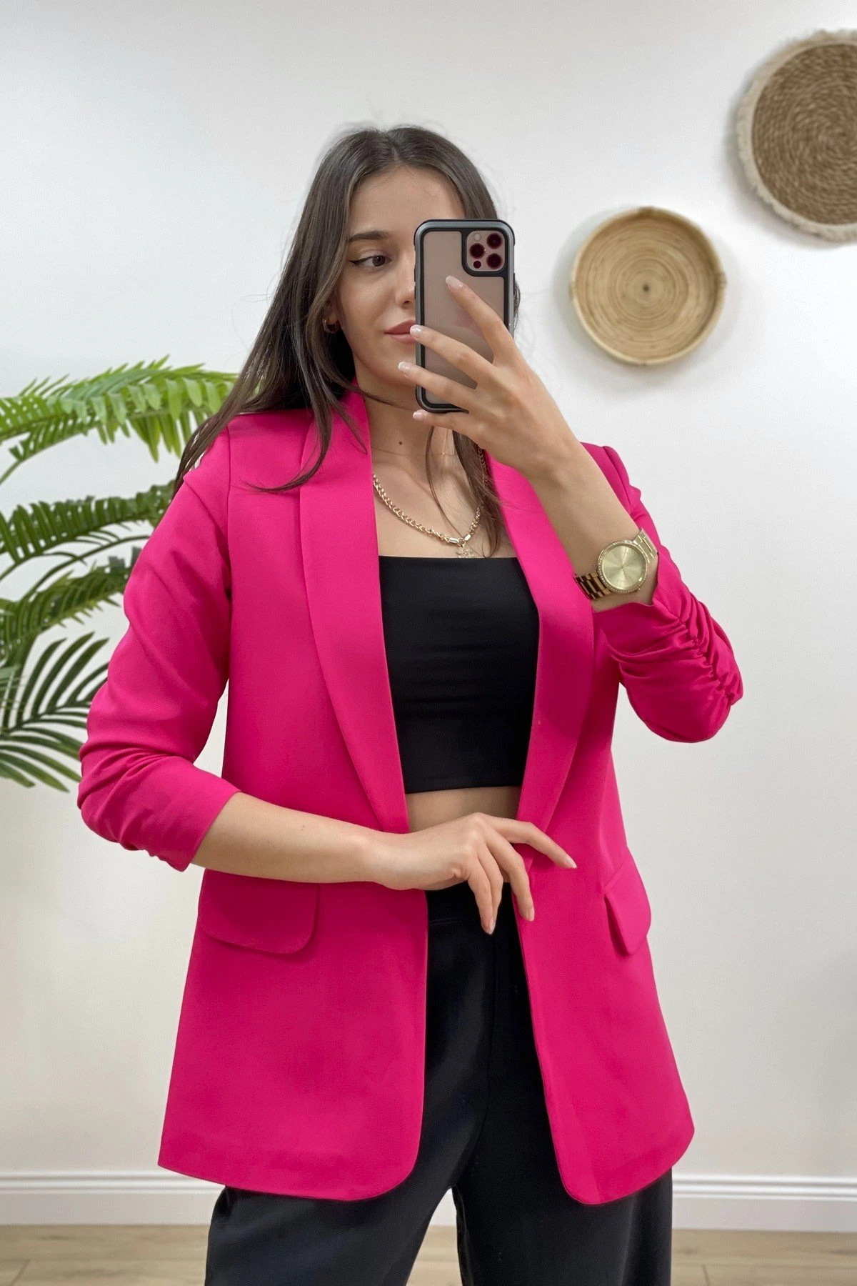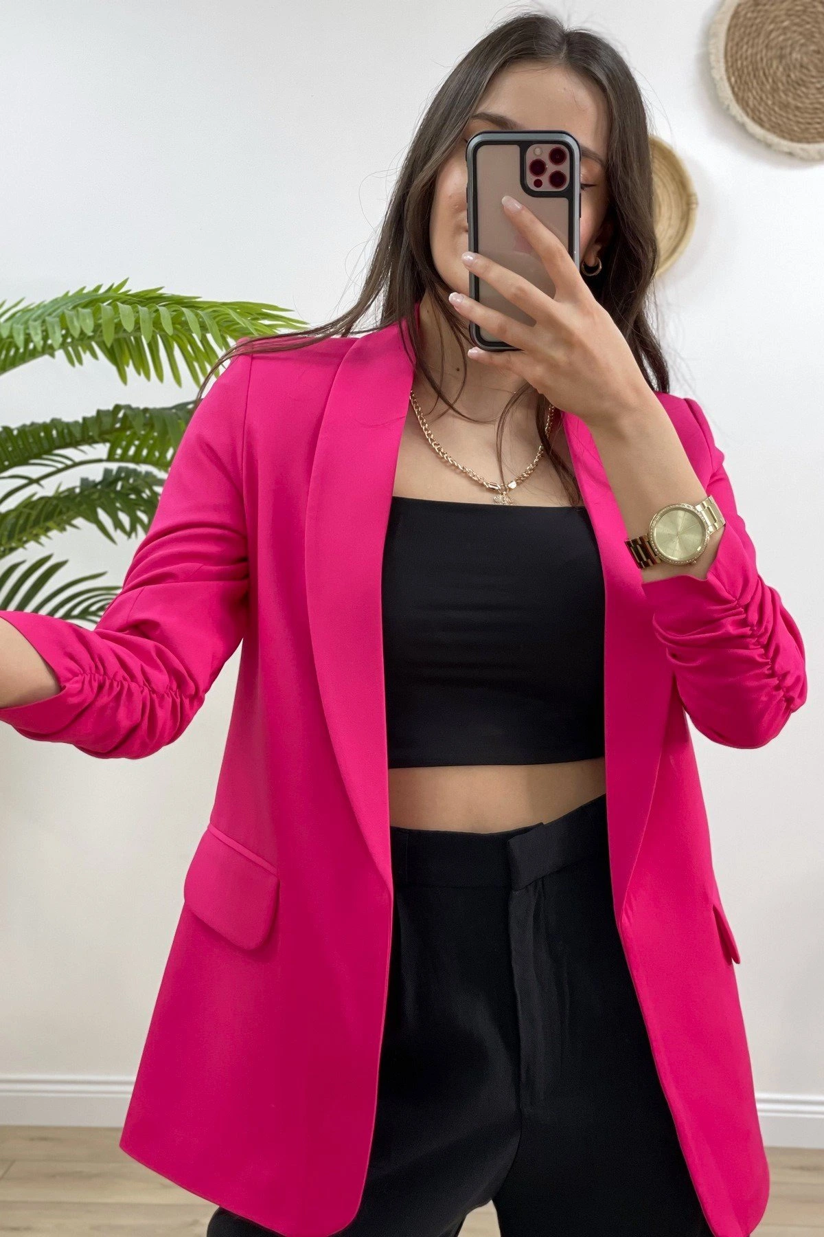 ATLAS KOL BÜZGÜLÜ CEKET – FUŞYA