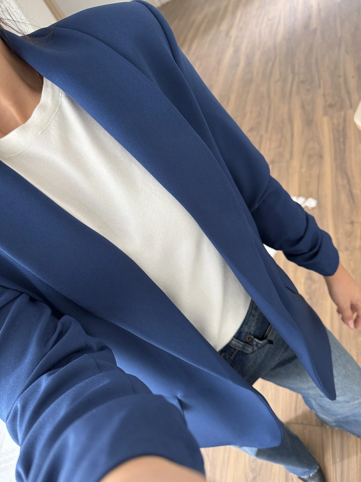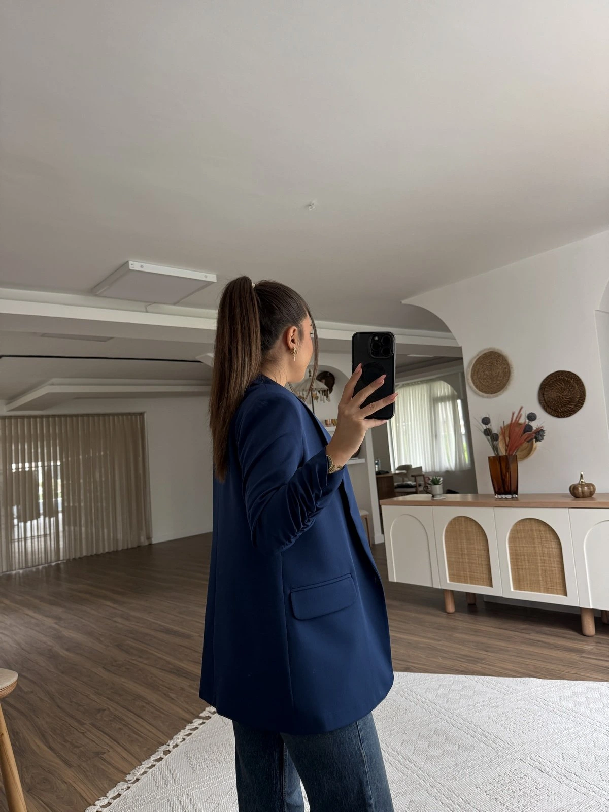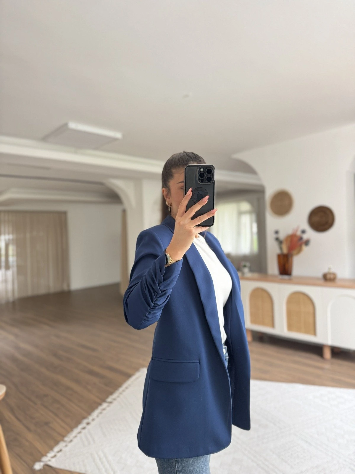 ATLAS KUMAŞ KOL BÜZGÜ CEKET – İNDİGO
