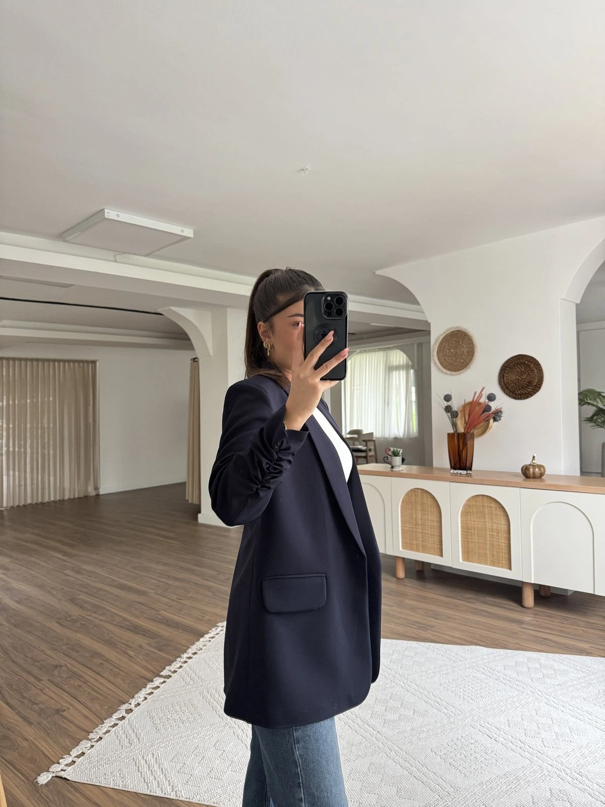 ATLAS KUMAŞ KOL BÜZGÜ CEKET – LACİVERT