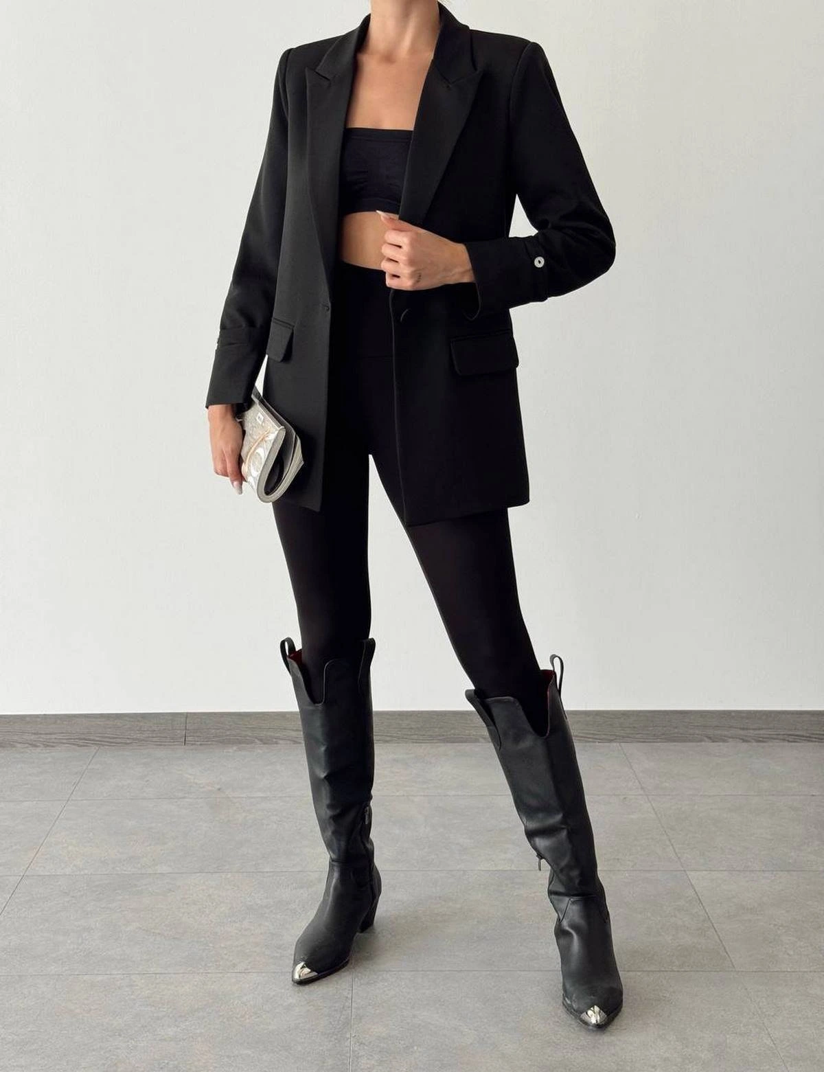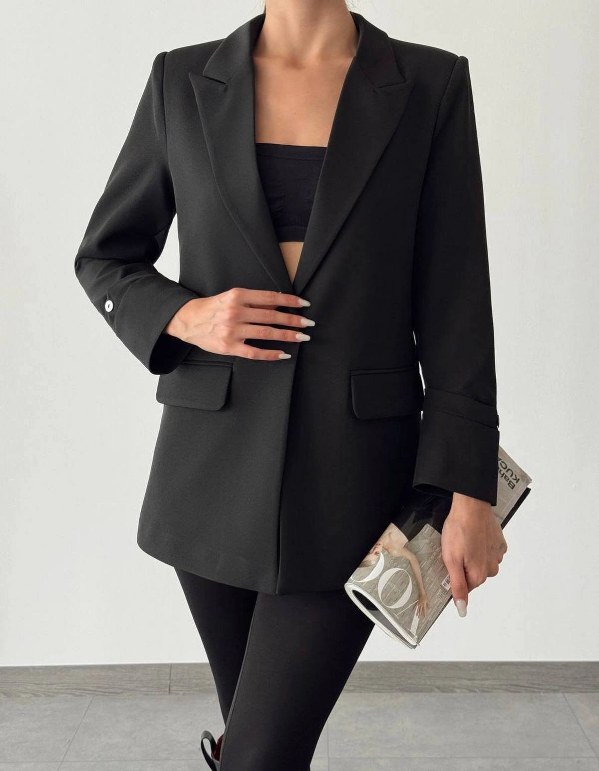 ATLAS KUMAŞ KOL DETAY CEKET – SİYAH