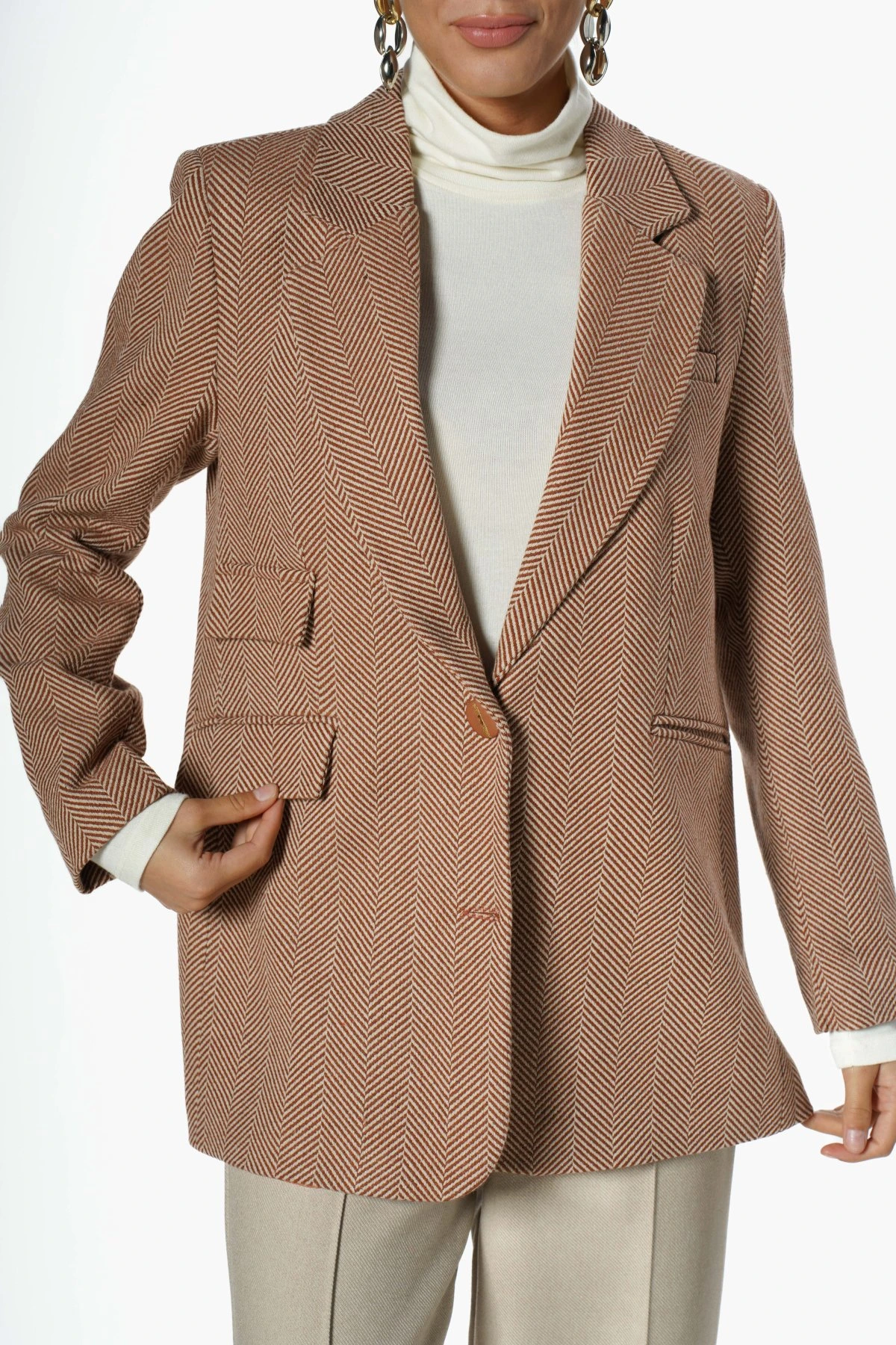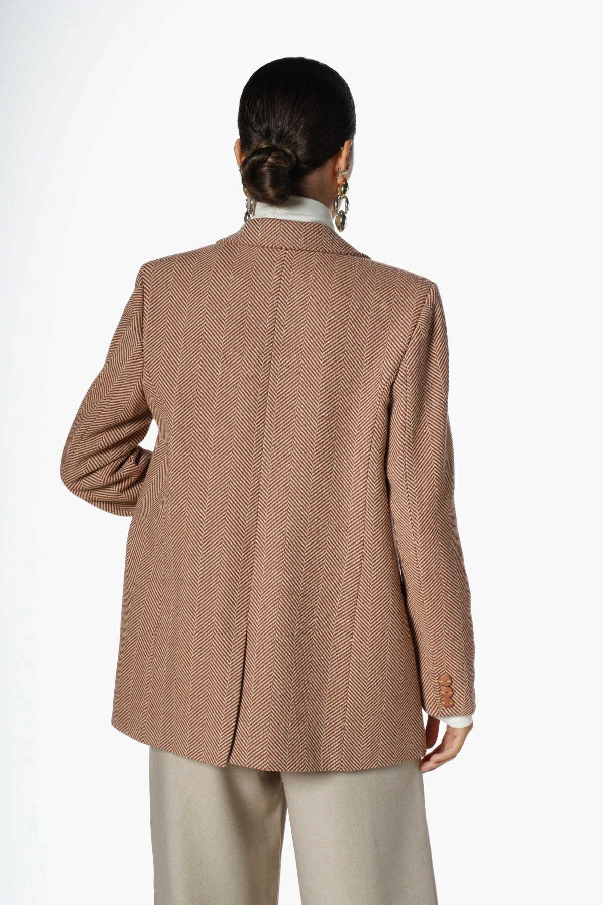BALIKSIRTI ÇİFT KAPAK CEP ARKA YIRTMAÇ CEKET – KARAMEL