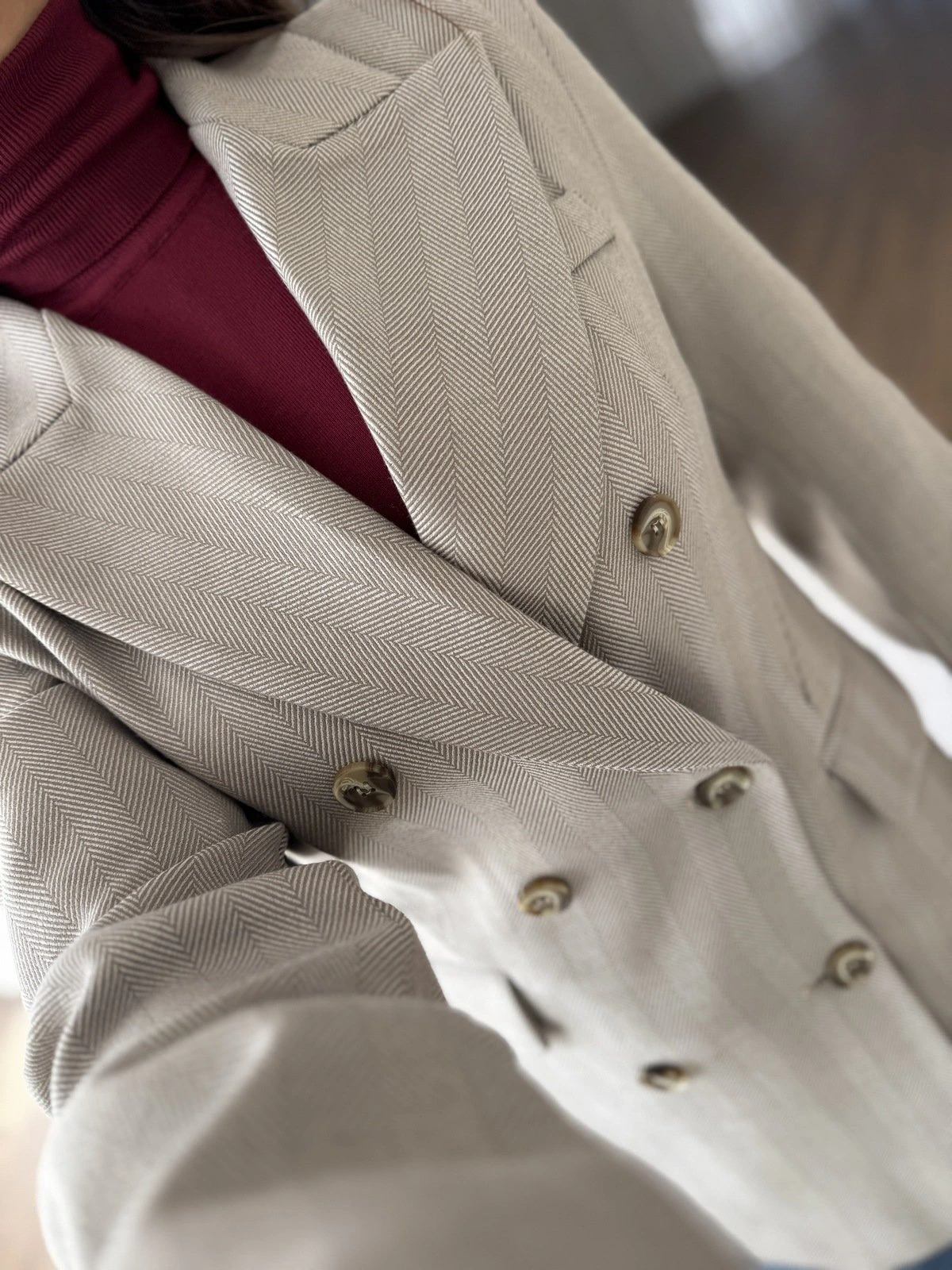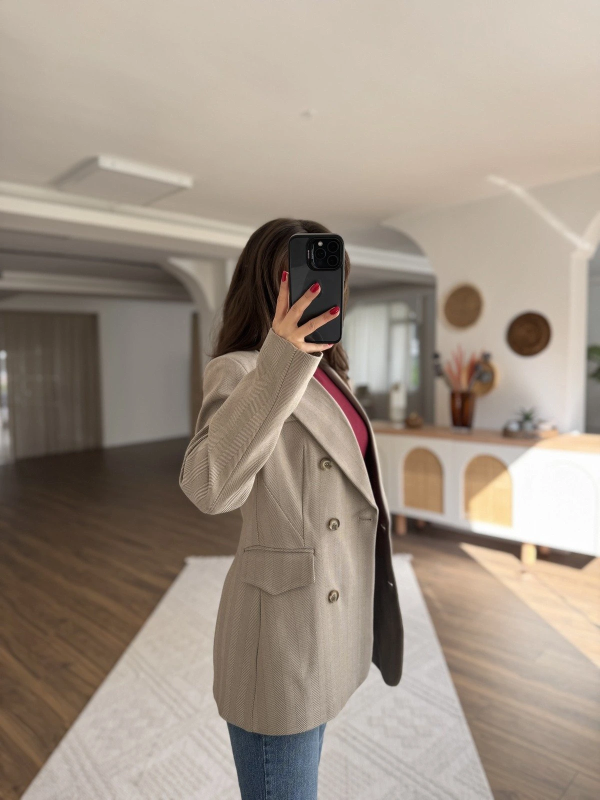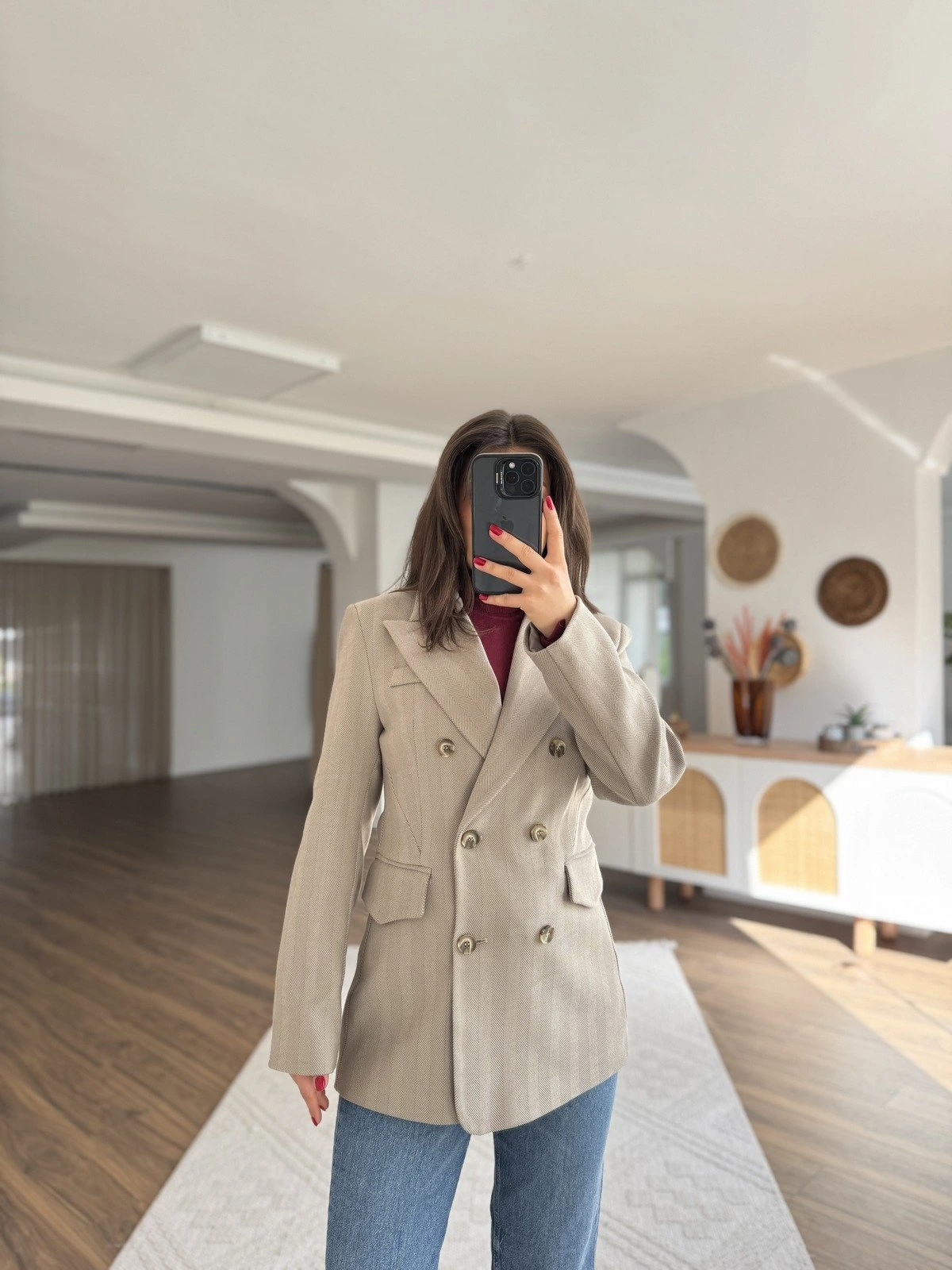 BALIKSIRTI DİKİŞ DETAY KRUVAZE CEKET – VİZON