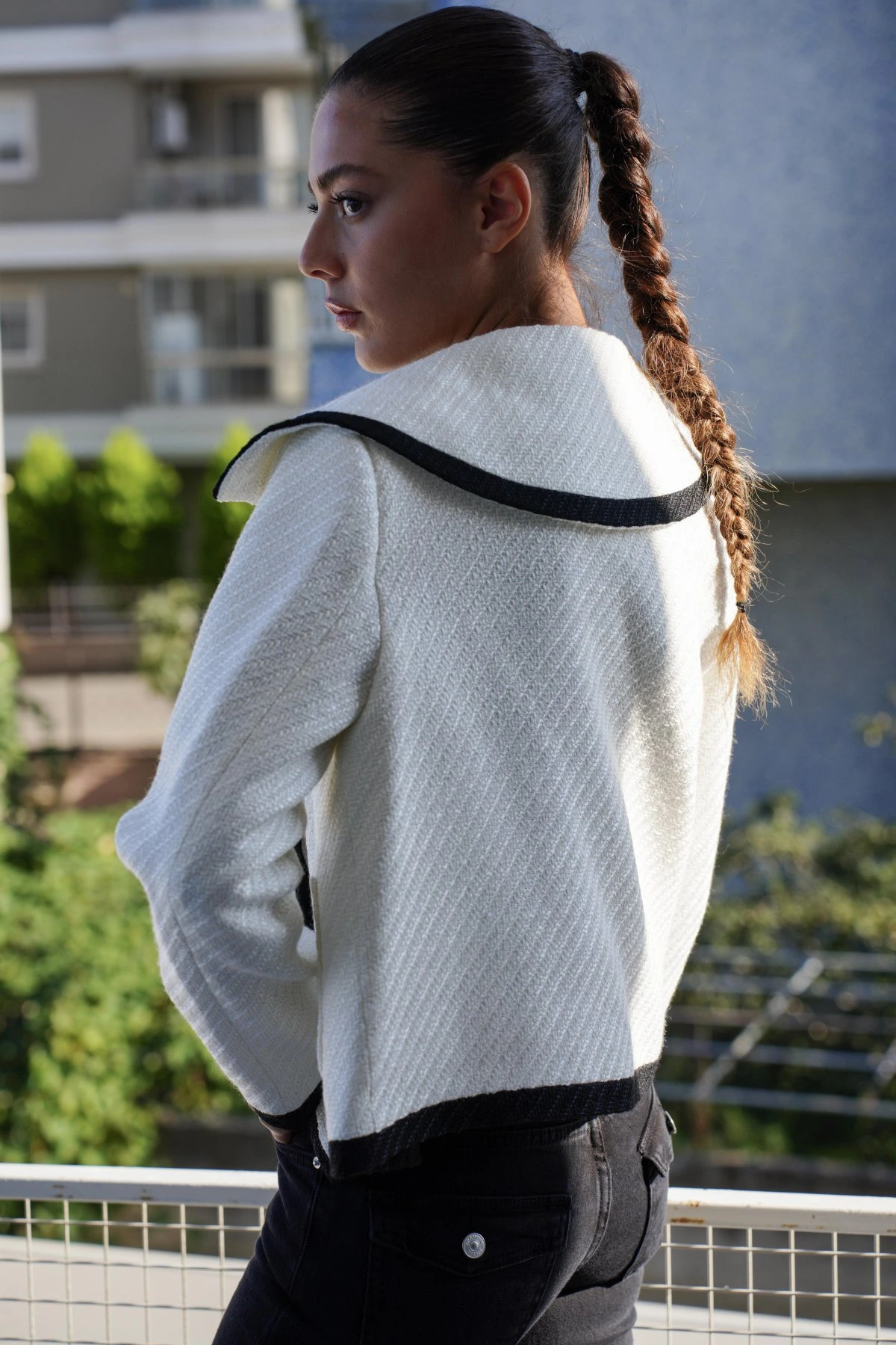 CEBİ TOKALI KENAR ŞERİTLİ KISA CEKET – BEYAZ