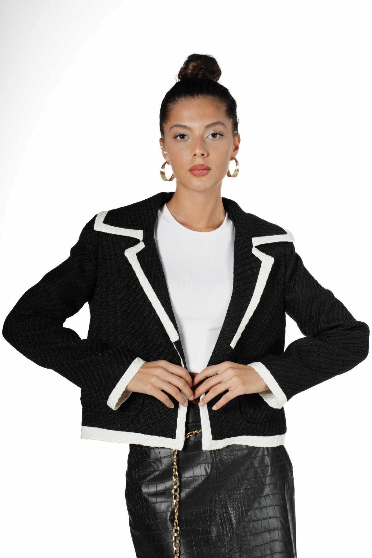 CEBİ TOKALI KENAR ŞERİTLİ KISA CEKET – SİYAH