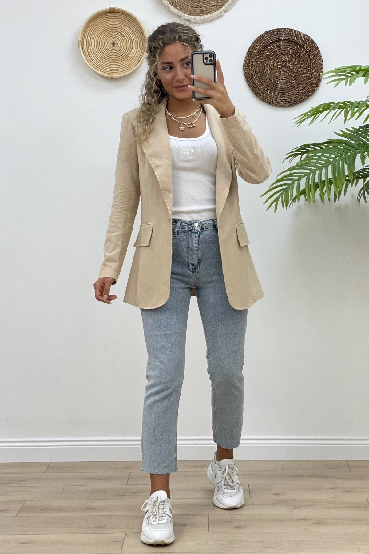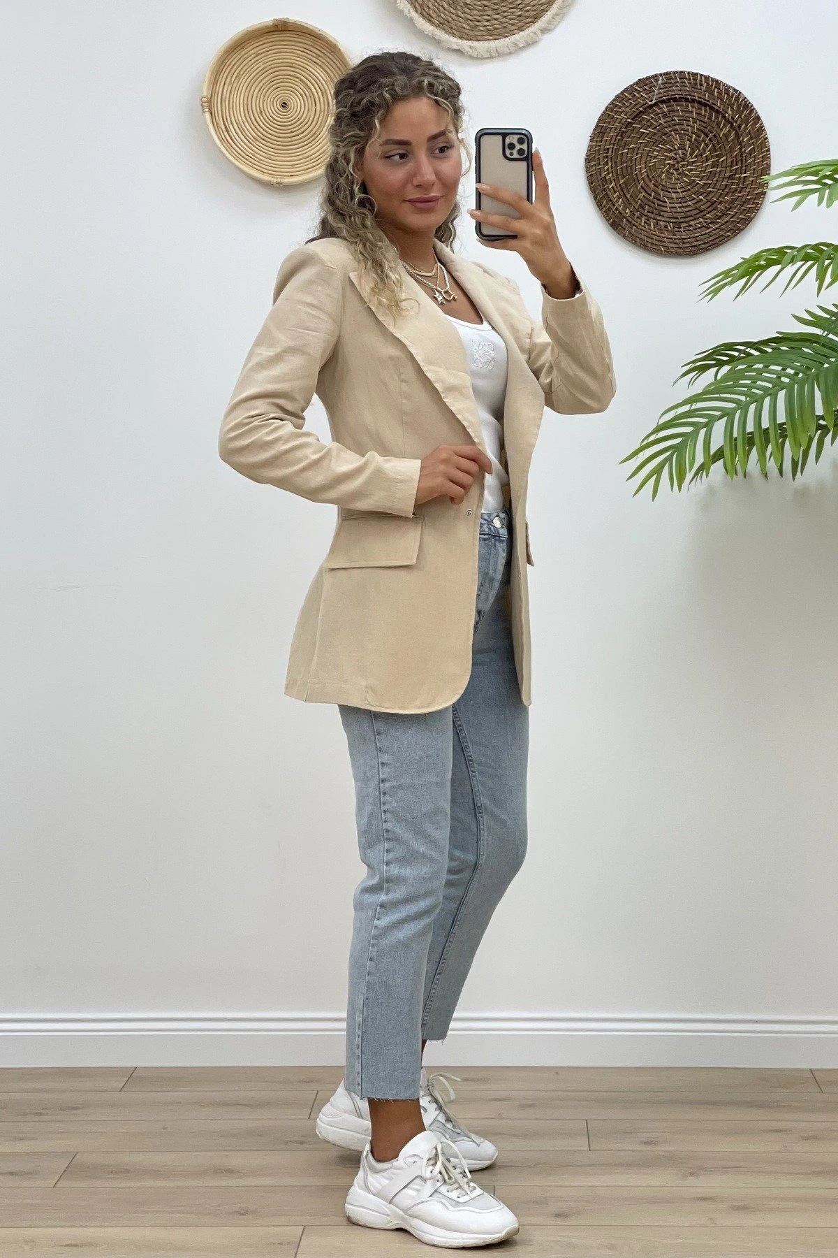 CEP KAPAKLI ASTARSIZ SLİM CEKET – BEJ