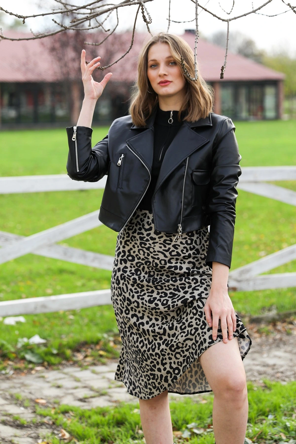 ÇİFT CEPLİ KISA DERİ CEKET – SİYAH