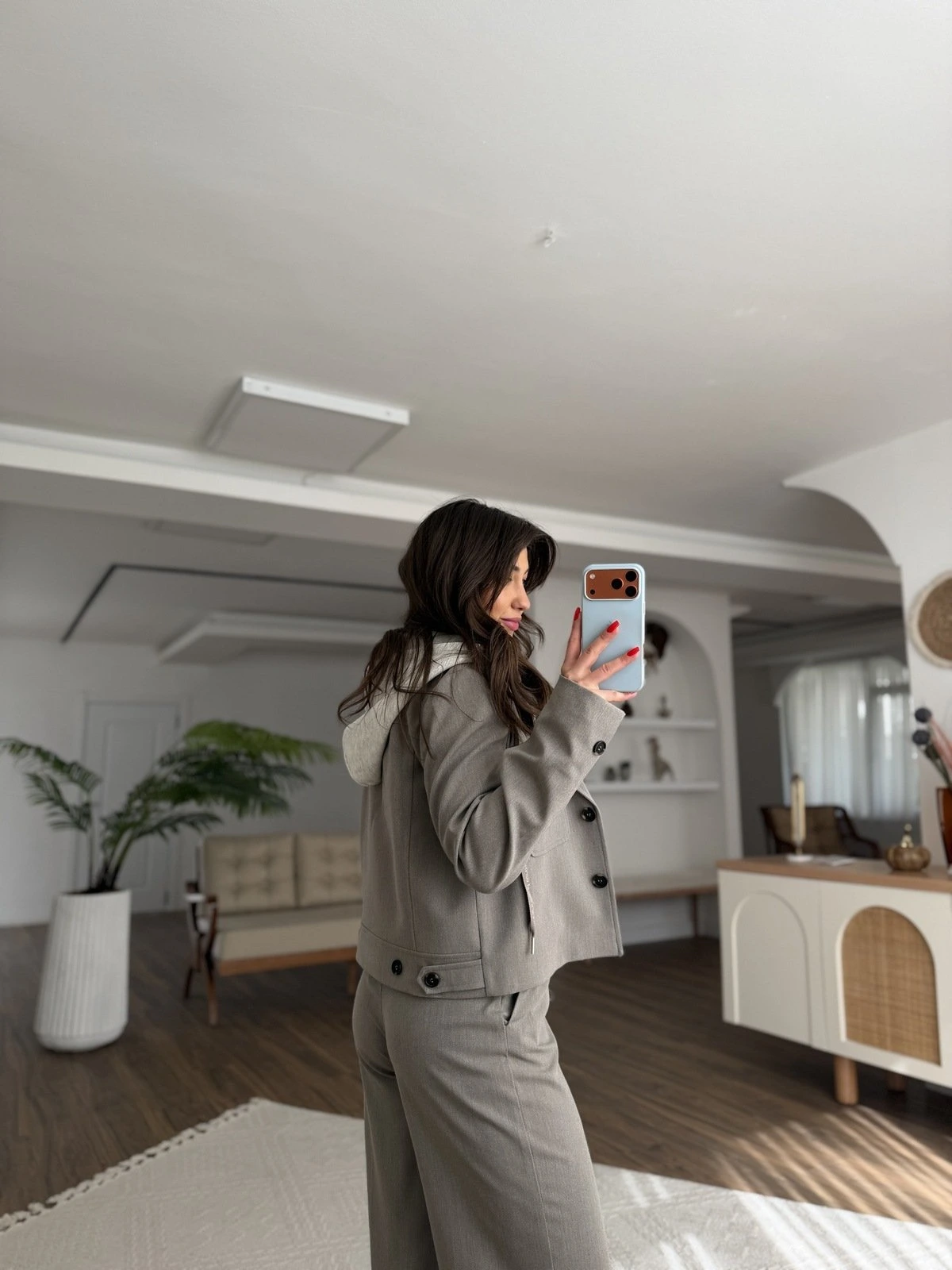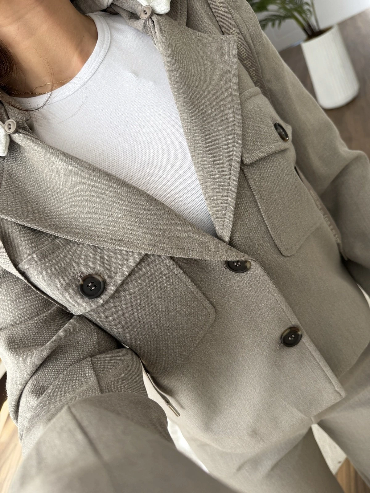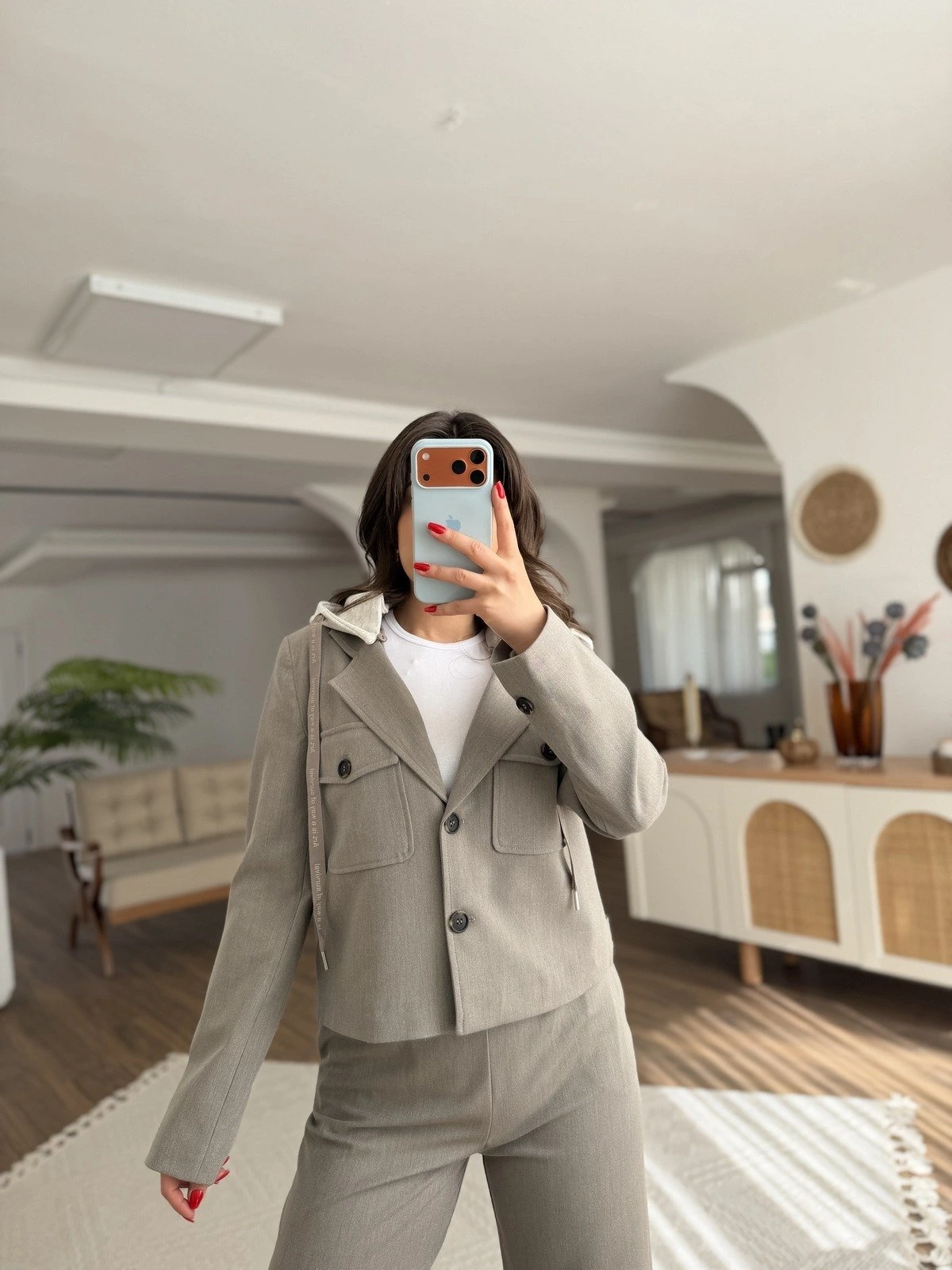 ÇIKARILABİLİR KAPÜŞON CEP DETAY KISA CEKET – BEJ