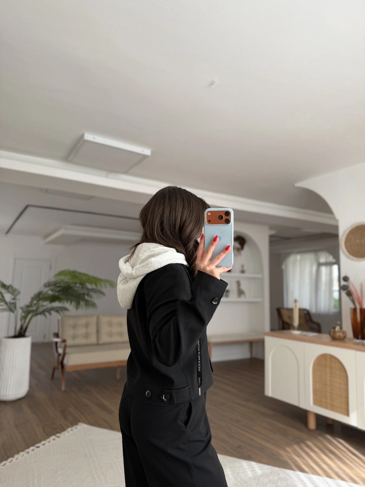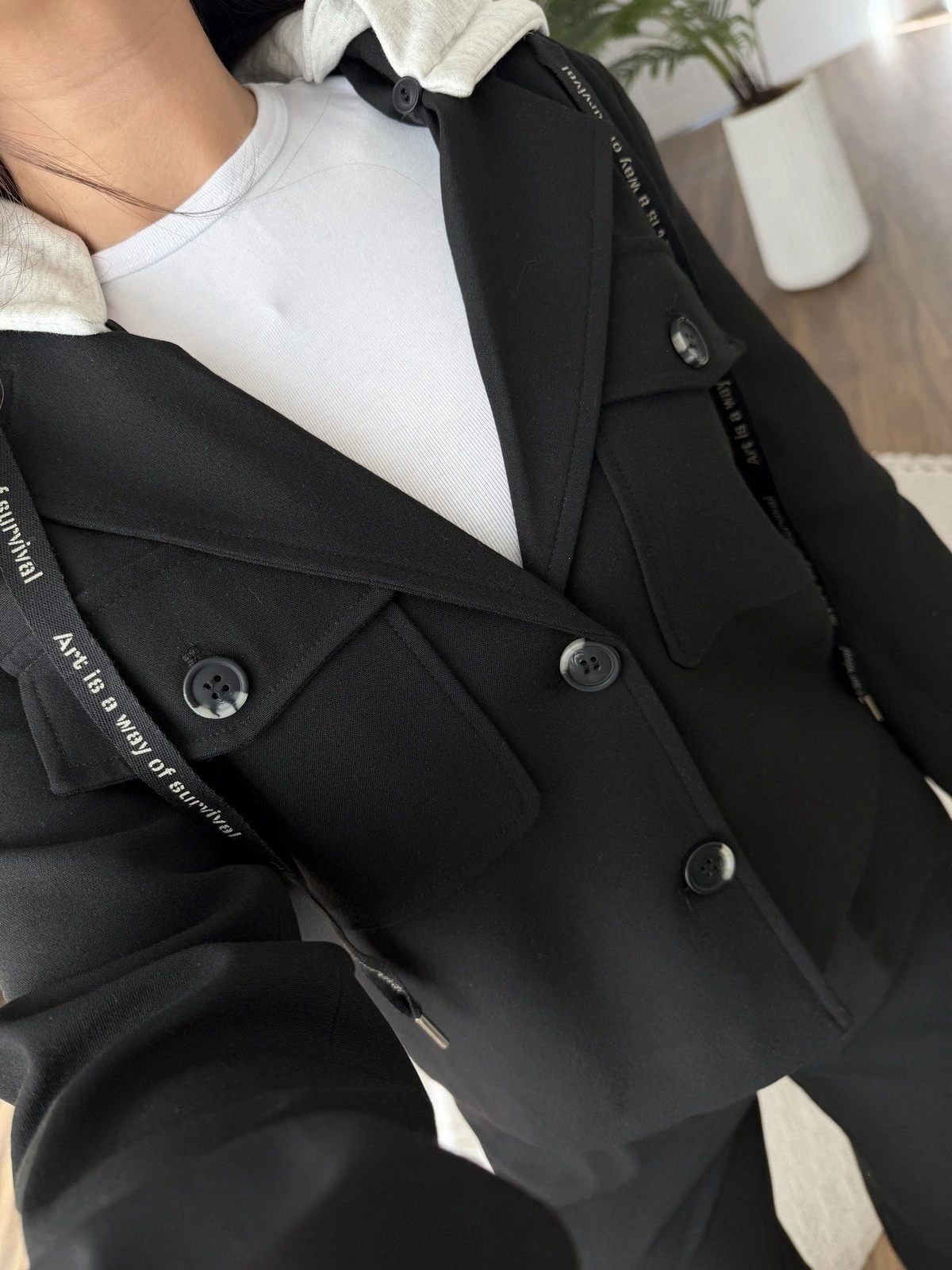 ÇIKARILABİLİR KAPÜŞON CEP DETAY KISA CEKET – SİYAH