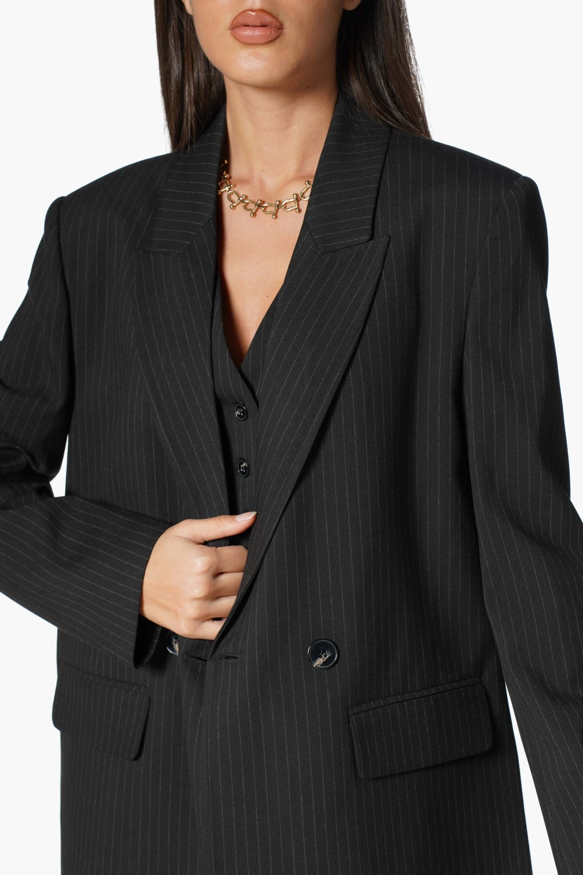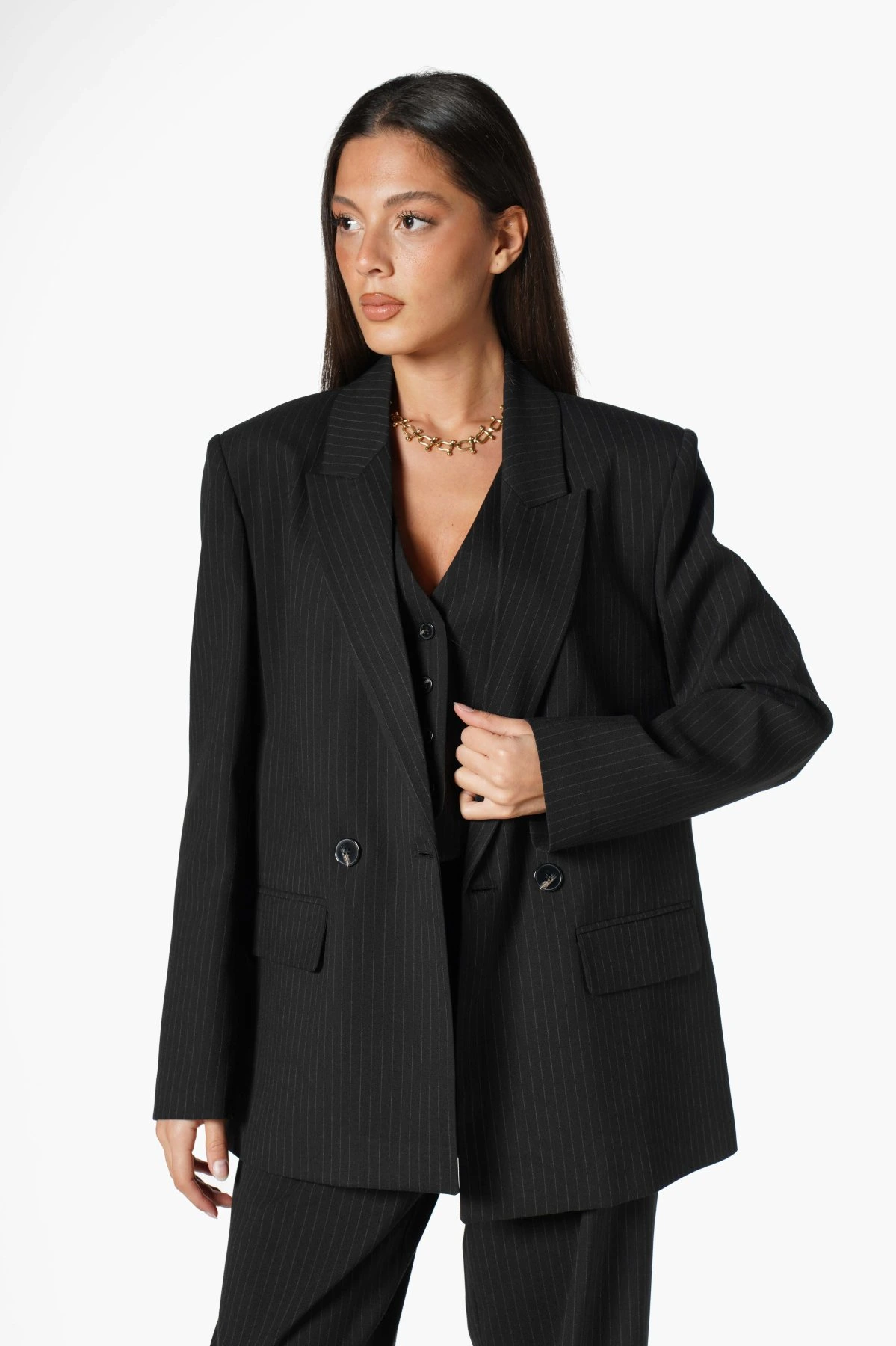 ÇİZGİLİ KAPAKLI TEK DÜĞME BLAZER CEKET – SİYAH