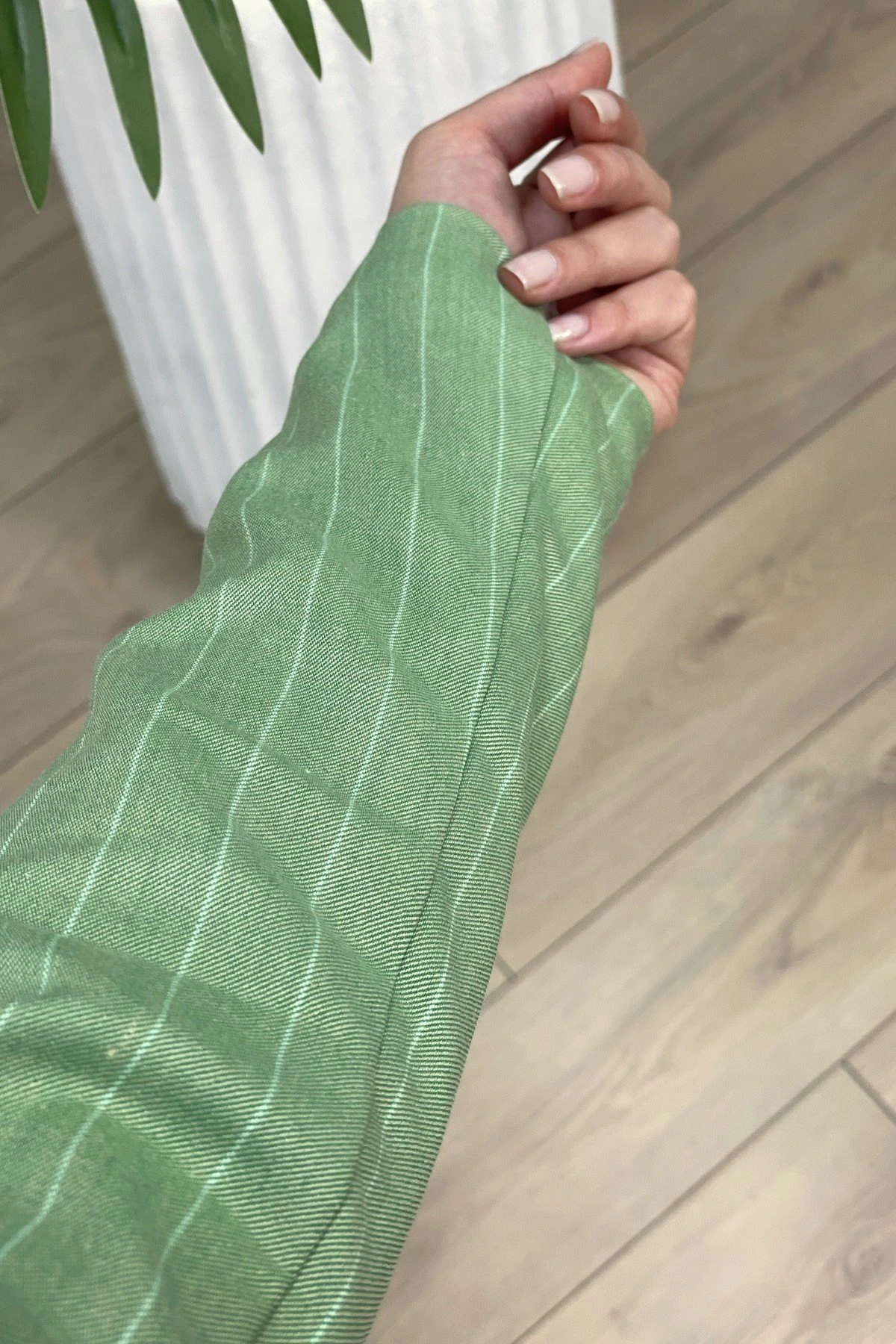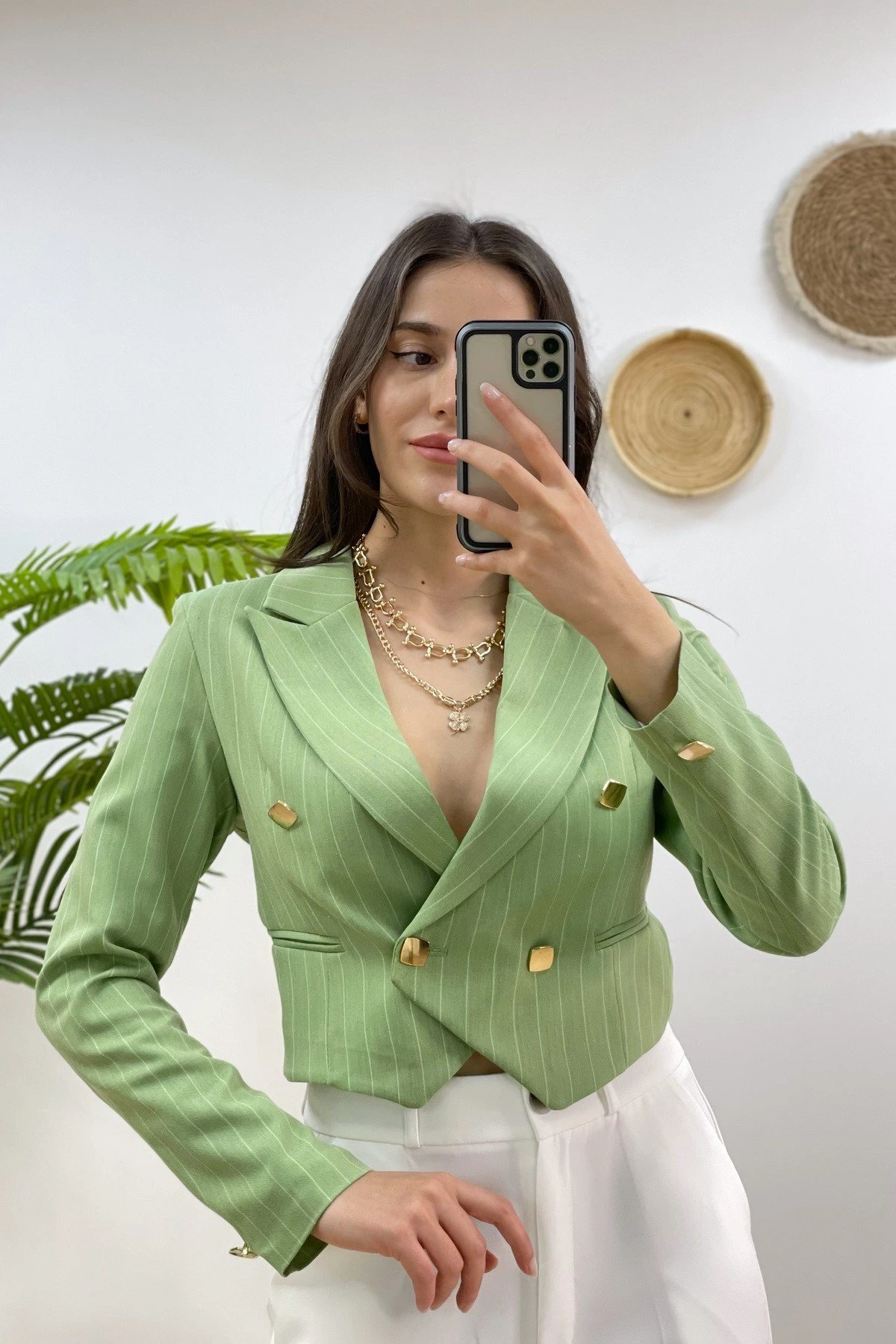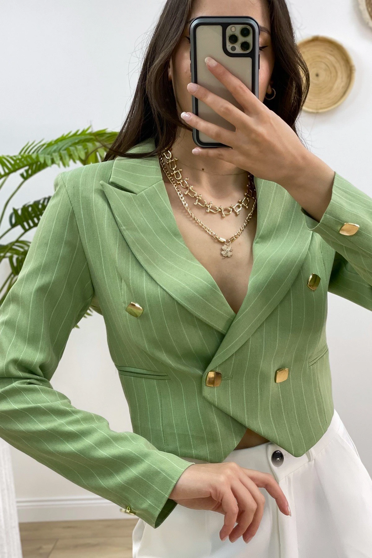ÇİZGİLİ KARE DÜĞME CROP CEKET – AÇIK YEŞİL