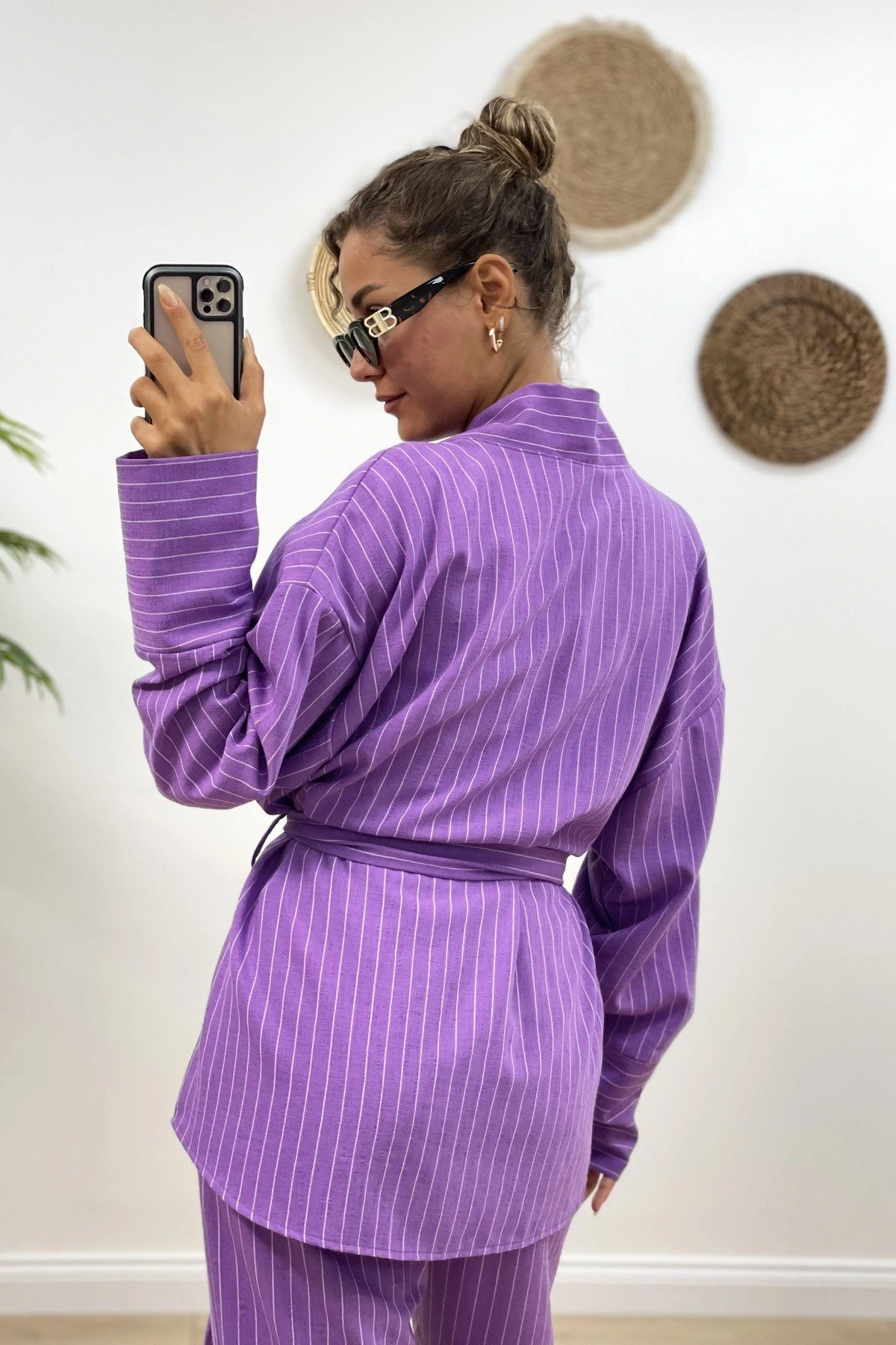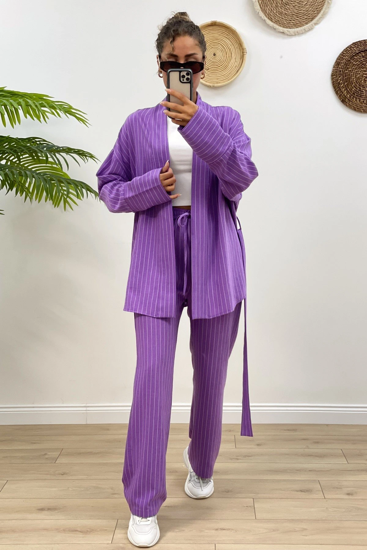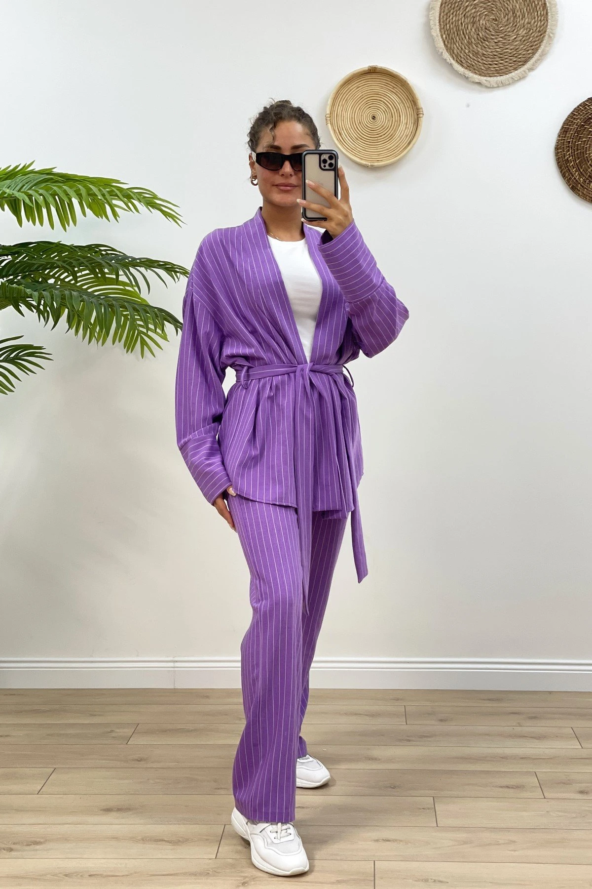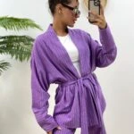 ÇİZGİLİ KİMONO TAKIM – LİLA
