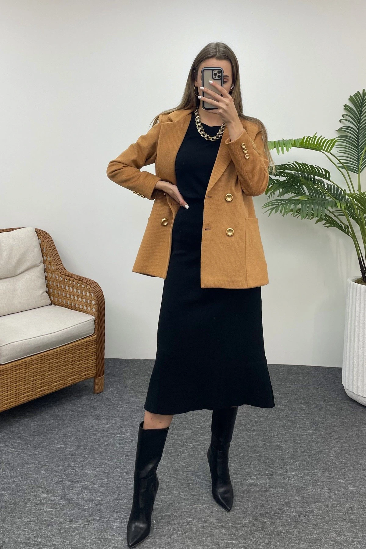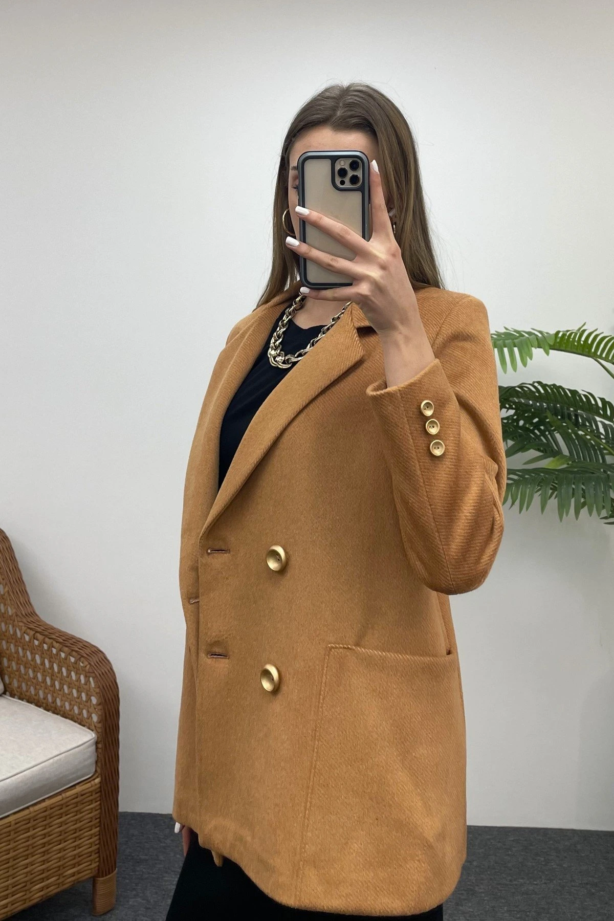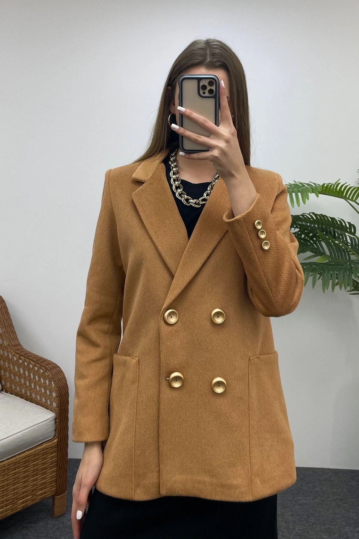 DİEGONEL KARE CEP CEKET – KARAMEL
