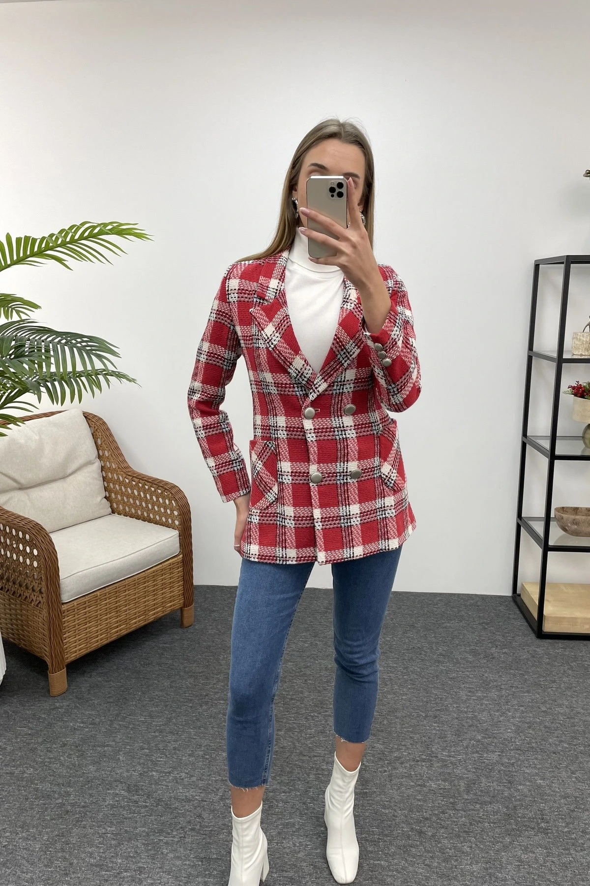 Modelin Üzerindeki Ürün, Serinin en küçük bedeni olan XS-S-26-34-36 Bedenleridir.