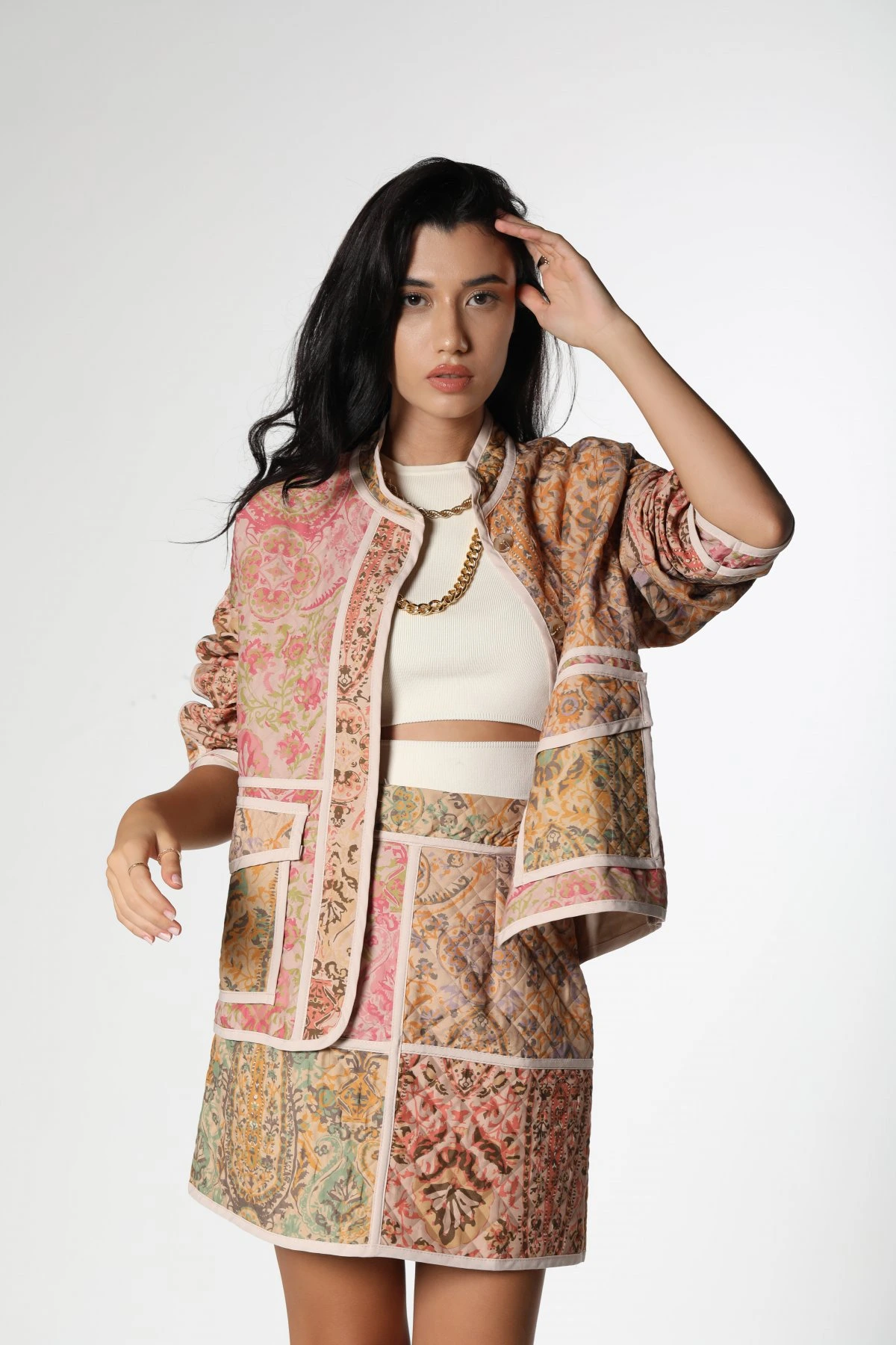 ETNİK DESEN KAPİTONE CEKET – PUDRA